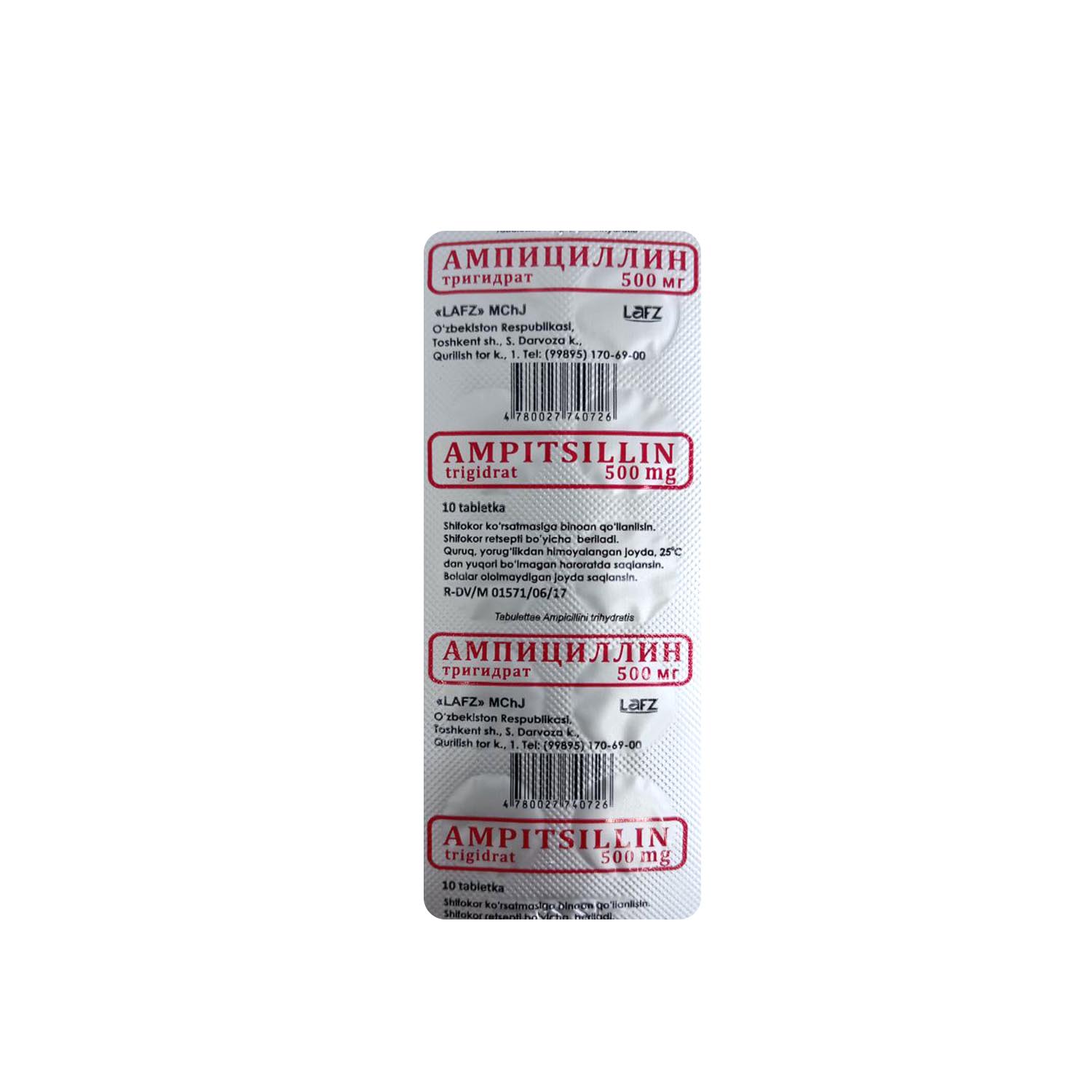 Ампициллин таб. 500 мг №100 LAFZ