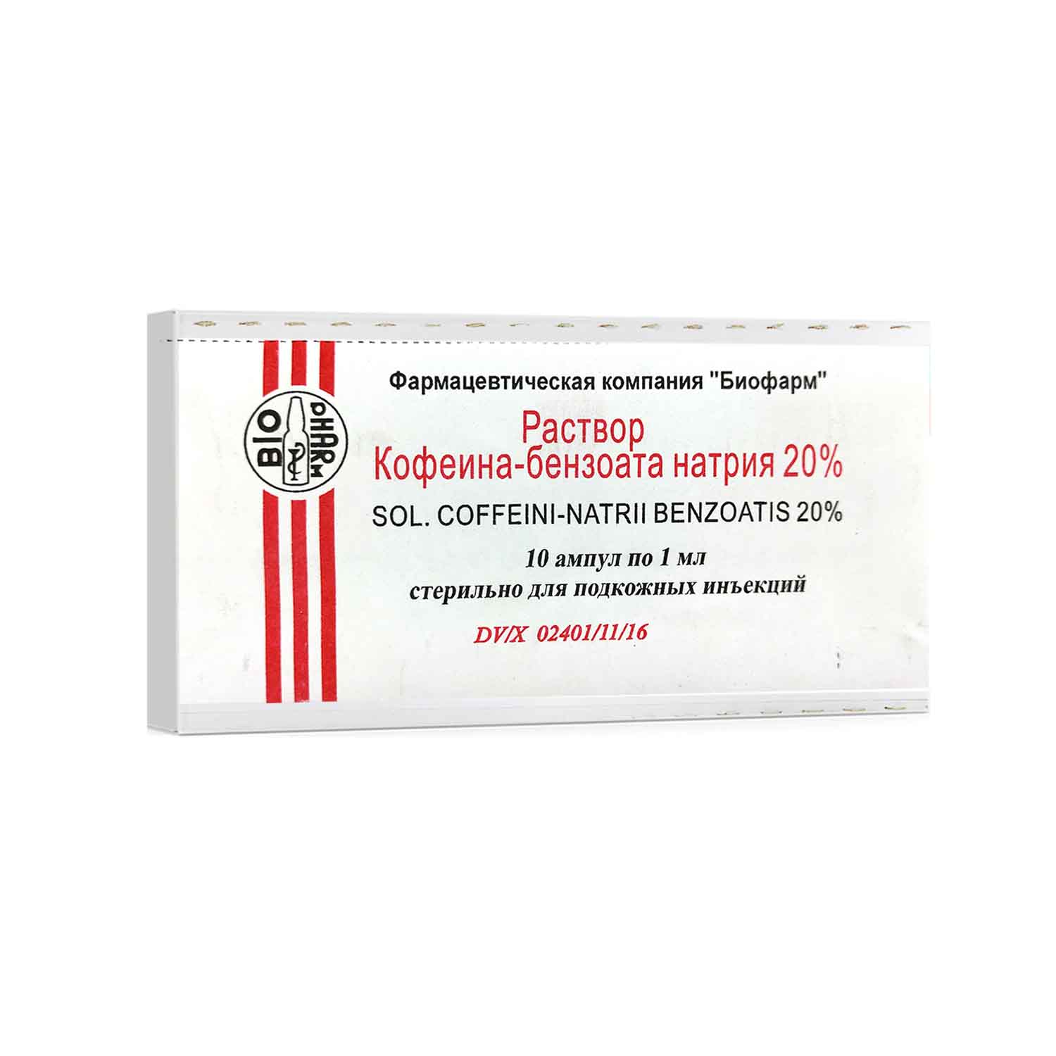 Кофеина-бензоат натрия р-р д/ин 20 % 1мл № 10