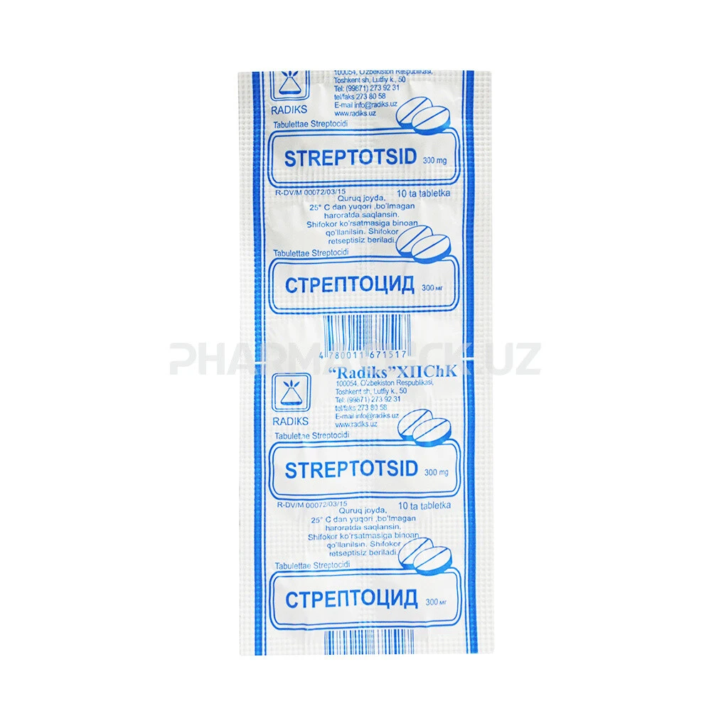 Инструкция Стрептоцид таб. 300мг №10 Radiks