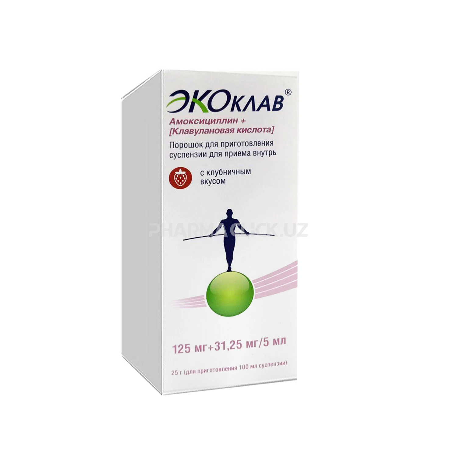 Инструкция ЭКОКЛАВ порошок для приготовления суспензии для приема внутрь 125 мг+31,25 мг/5 мл 25г
