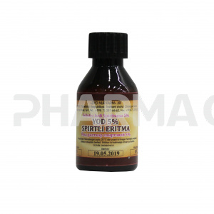 Раствор для местного и наружного применения спиртовой 5% прозрачный, красно-бурого цвета, с характерным запахом.