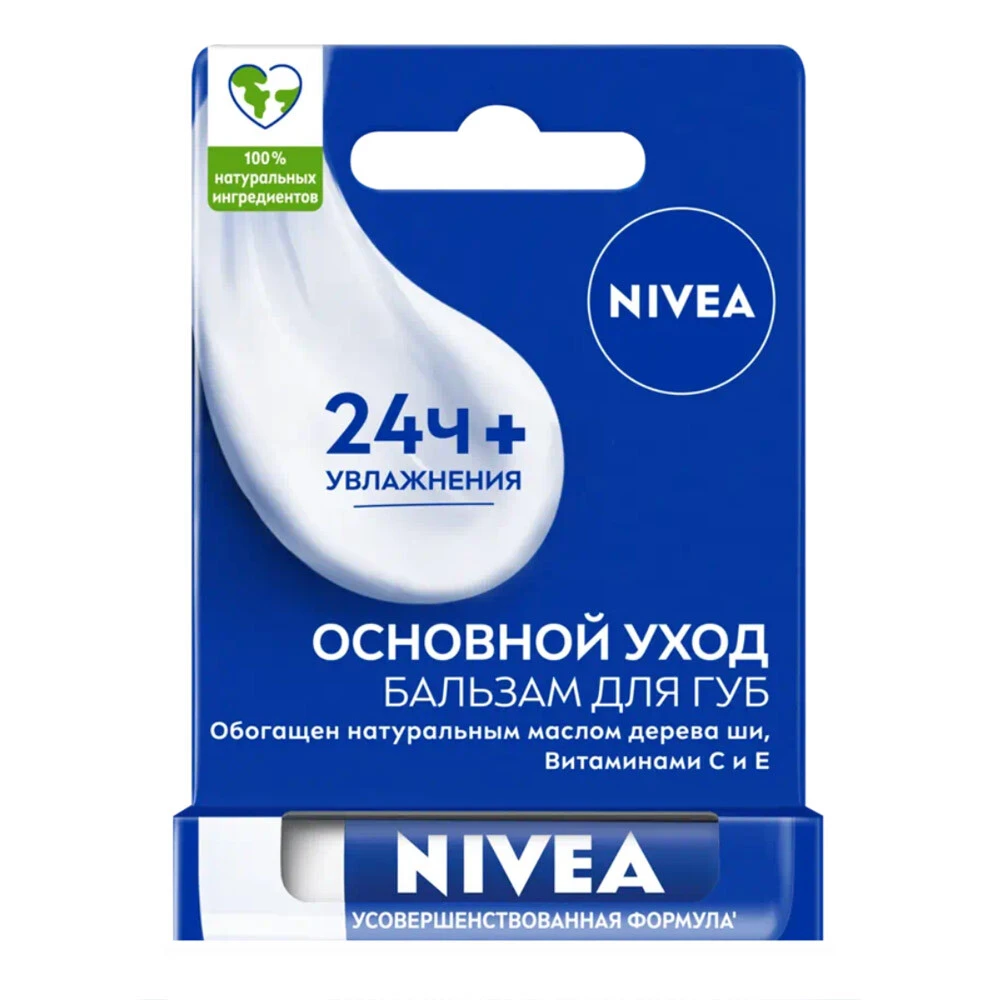 Хотите защитить ваши губы от сухости и обеспечить им уход, который длится целый день? Попробуйте бальзам для губ Основной уход от NIVEA со специальной усовершенствованной формулой с натуральным маслом дерева ши и Витаминами С и Е. Ухаживающая формула бальзама мгновенно тает на губах, придавая мягкость и гладкость, защищает от мороза и ветра, увлажняя 24+ часа.