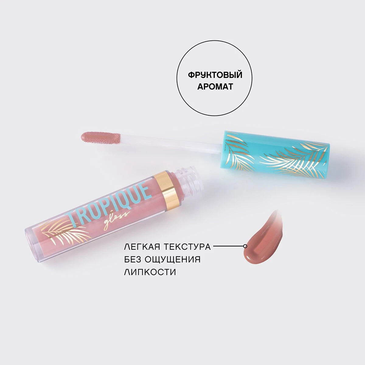 Яркие лаковые оттенки переплетаются с глиттерными сияющими тонами. А для эффектного образа на вечернем променаде мы добавили в палитру утонченные нюдовые цвета — микс из блесков для любого случая. Идеальная текстура TROPIQUE GLOSS (Тропик Глёсс) не оставляет липкости, делает губы гладкими и ровными, придавая объем и выразительность. Палитра из 20 оттенков просто создана для твоих идей и экспериментов!