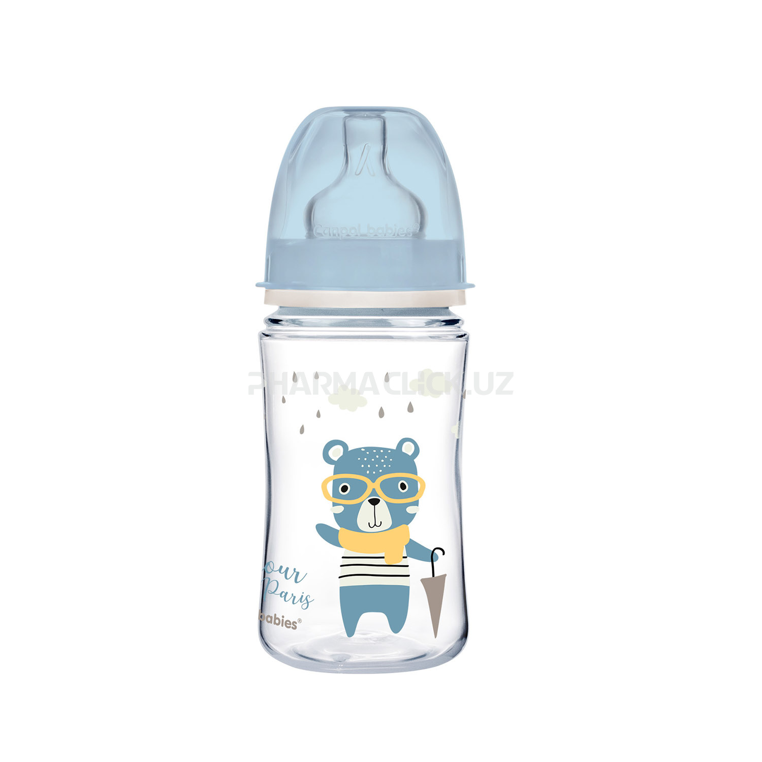 Антиколиковая бутылочка Canpol Babies с широким горлышком серии BONJOUR PARIS голубая, с 3 месяцев, 240 мл
