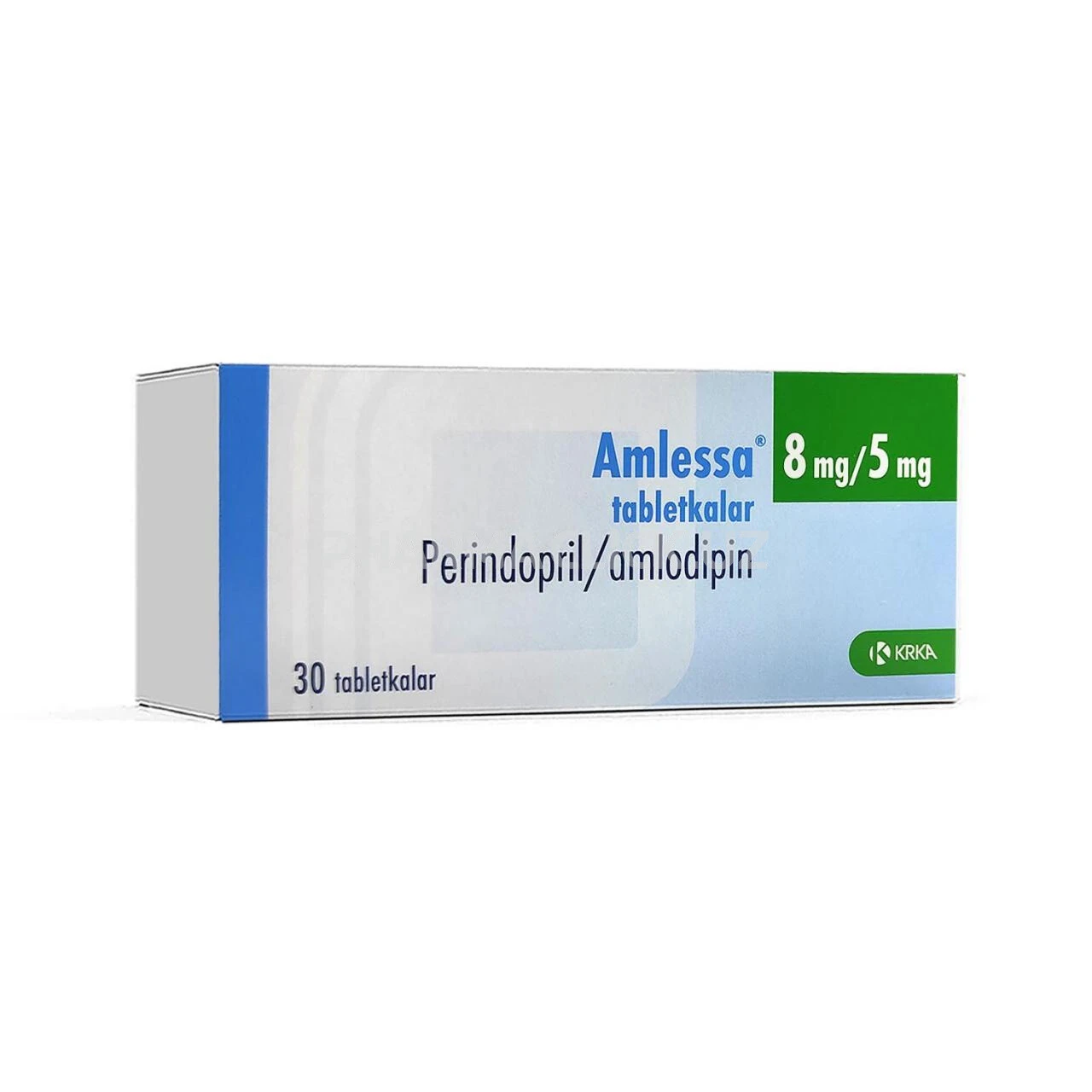 Амлесса представляет собой комбинацию периндоприла эрбумина - ингибитора АКФ и амлодипина-антагониста ионов кальция дигидропиридиновой группы. Ингибирование АКФ приводит к снижению ангиотензина II в плазме, что ведет к повышению активности ренина в плазме и снижению выделения альдостерона. Ингибиро¬вание АКФ также приводит к повышению активности циркулирующей и локальной калликреин-кининовой системы (а также к активизации системы простагландина). Возможно, что данный механизм способствует наступлению гипотензивного действия ингибиторов АКФ и частично вызывает некоторые из побочных эффектов (например, кашель). Периндоприл действует через свой активный метаболит периндоприлат. Другие метаболиты не показали способности ингибировать действие АКФ. Гипертензия Периндоприл действует при артериальной гипертензии любой степени слабой, средней и тяжелой; снижает систолическое и диастолическое артериальное давление как в положении лежа на спине, так и в положении стоя. Периндоприл уменьшает сопротивление периферических сосудов, что приводит к снижению артериального давления. Как следствие, увеличивается периферический кровоток, не влияя на частоту сердечных сокращений. Как правило, почечный кровоток увеличивается, в то время как уровень гломерулярной фильтрации обычно остается без изменений. Максимальная гипотензивная активность достигается через 4-6 часов после приема однократной дозы и сохраняется в течение не менее 24 часов. Снижение артериального давления наступает быстро. У пациентов, восприимчивых к лечению, нормализация артериального давления происходит в течение месяца и сохраняется без возникновения тахифилаксии. Прекращение лечения не сопровождается развитием синдрома отмены. Периндоприл уменьшает гипертрофию левого желудочка. Подтверждено, что периндоприл оказывает сосудорасширяющие действие, улучшает эластичность крупных артерий и уменьшает соотношение потока/ просвета малых артерий. Пациенты со стабильной коронарной болезнью сердца Лечение периндоприла эрбумина 8 мг (что эквивалентно 10 мг периндоприла аргинина) при приеме один раз в день приводит к абсолютному значимому снижению первичной конечной точки на 1,9% (снижение относительного риска на 20%). У пациентов, имевших в анамнезе инфаркт миокарда и/или реваскуляризацию, абсолютное снижение по первичной конечной точке достигает 2,2%, что соответствует снижению относительного риска (СОР) на 22,4%, по сравнению с плацебо. Амлодипин – антагонист ионов кальция и блокатор медленных каналов, блокирует поступление ионов кальция через мембраны в гладкомышечные клетки миокарда и сосудов. Механизм антигипертензивного действия амлодипина обусловлен прямым расслабляющим эффектом на гладкие мышцы сосудов. Точный механизм действия амлодипина при стенокардии окончательно не установлен, но амлодипин уменьшает ишемию двумя путями 1) расширяет периферические артериолы и таким образом снижает общее периферическое сопротивление (постнагрузку), на преодоление которой затрачивается работа сердца; так как частота сердечных сокращений остается стабильной, уменьшение нагрузки на сердце приводит к снижению потребления энергии миокардом и его потребности в кислороде 2) расширяет главные коронарные артерии и коронарные артериолы, при этом увеличивается пос