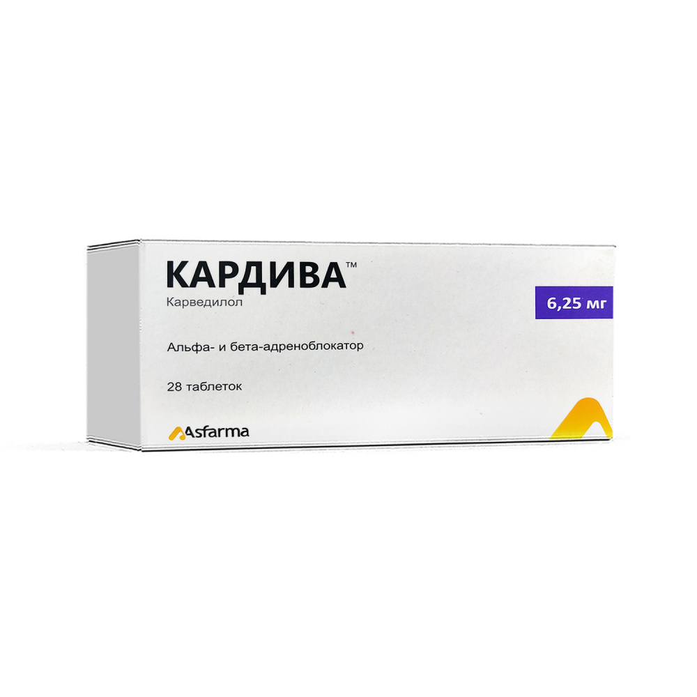 Инструкция Кардива таб. 6,25мг №28