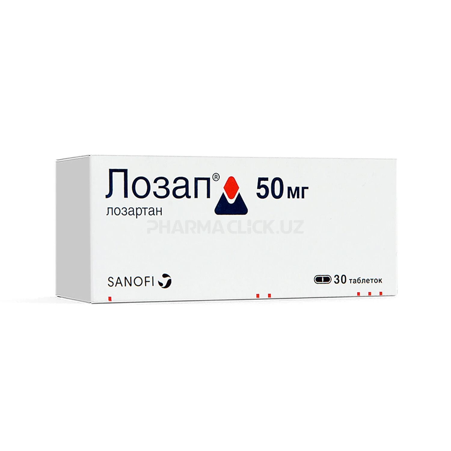 Лозартан является специфическим антагонистом рецепторов ангиотензина II (подтип АТ1). Не подавляет киназу II–фермент, который катализирует реакцию превращения ангиотензина I в ангиотензин II. Снижает общее периферическое сосудистое сопротивление (ОПСС), концентрацию в крови адреналина и альдостерона, артериальное давление (АД), давление в малом круге кровообращения; уменьшает постнагрузку, оказывает диуретический эффект. Препятствует развитию гипертрофии миокарда, повышает толерантность к физической нагрузке у пациентов с сердечной недостаточностью. Лозартан не ингибирует ангиотензинпревращающий фермент (АПФ)-киназу II и, соответственно, не препятствует разрушению брадикинина, поэтому побочные эффекты, опосредованно связанные с брадикинином (например, ангионевротический отек) возникают достаточно редко. После однократного приема гипотензивное действие (снижается систолическое и диастолическое АД) достигает максимума через 6 часов, затем в течение 24 ч постепенно снижается. Максимальный гипотензивный эффект достигается через 3-6 недель после начала приема препарата. У больных с артериальной гипертензией без сопутствующего сахарного диабета с протеинурией (более 2 г/сутки), применение препарта достоверно снижает протеинурию, экскрецию альбумина и иммуноглобулинов G. Стабилизирует уровень мочевины в плазме крови. Не влияет на вегетативные рефлексы, и не оказывает длительного воздействия на концентрацию норадреналина в плазме крови. Лозартан в дозе до 150 мг в сутки не влияет на уровень триглицеридов, общего холестерина и холестерина липопротеидов высокой плотности (ЛПВП) в сыворотке крови у больных в артериальной гипертензией. В этой же дозе, лозартан не влияет на уровень глюкозы в крови натощак.