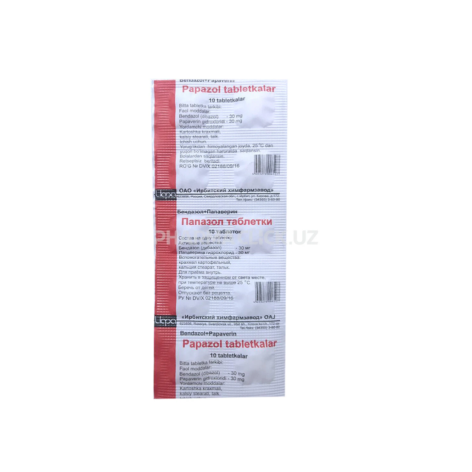 Инструкция Папазол таб. №10 Ирбитский ХФЗ