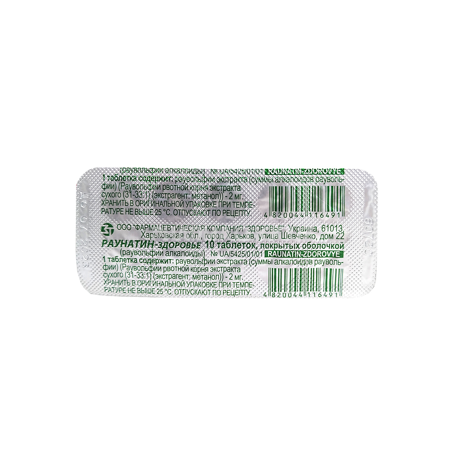 1 таблетка содержит раунатина в пересчете на содержание алкалоидов 2 мг; вспомогательные вещества сахар-песок; крахмал кукурузный; глюкоза, моногидрат; кальция стеарат; кислота стеариновая; масло минеральное; магния карбонат легкий; титана диоксид (Е 171); повидон; сиковит Green Z2755; тальк; кремния диоксид коллоидный безводный; воск пчелиный.