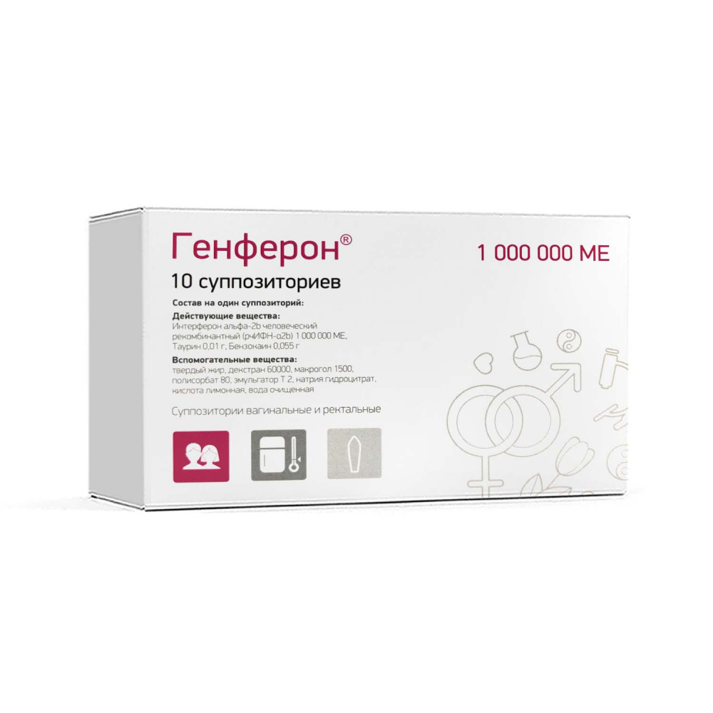 Инструкция Генферон супп. ваг. 1000000МЕ №10