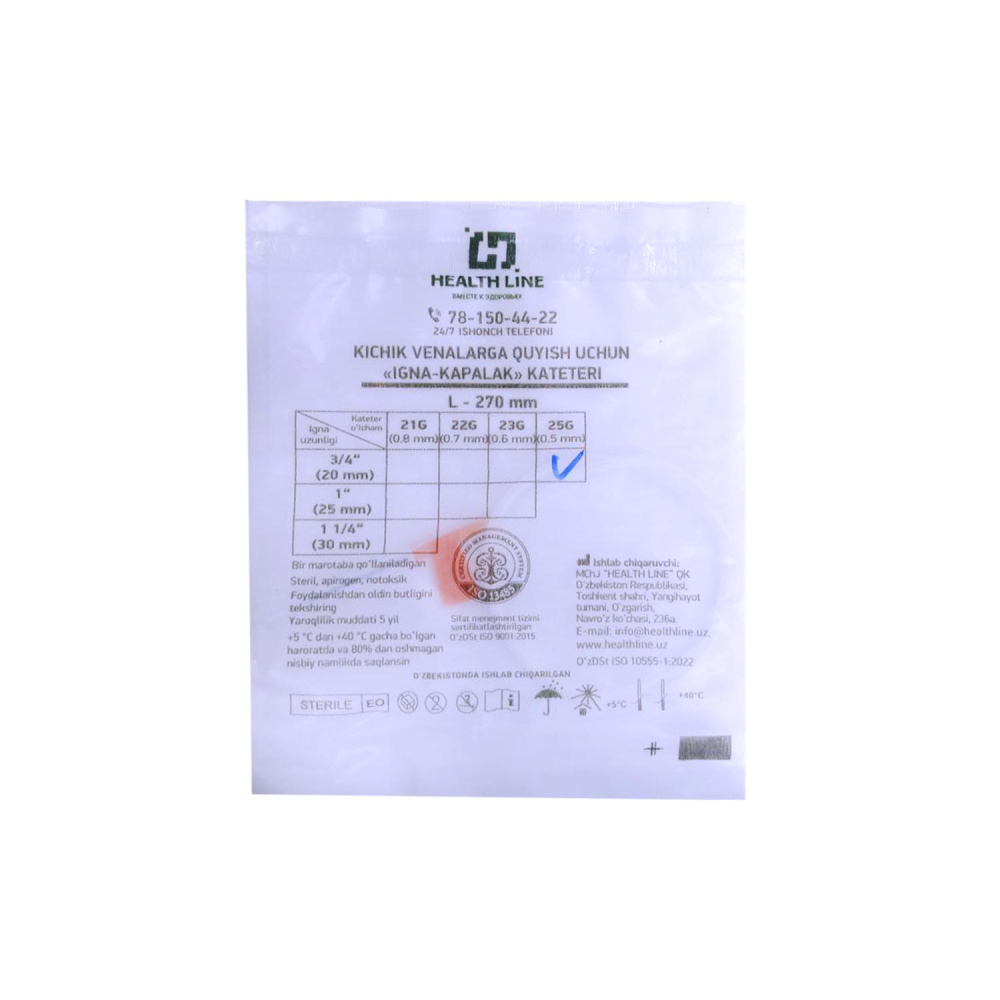 Применяемый размерный ряд иглы-бабочки 18, 19, 20, 21, 22, 23, 25, 27 позволяет применять их в зависимости от диаметра вены и вязкости вводимого раствора.Катетер внутривенный бабочка имеет гибкие "крылышки", сделанные из слабоокрашенного полиэтилена с цветовой кодировкой по стандартом ISO в зависимости от размера иглы позволяет легко и быстро выбрать нужное перфузионное устройство в соответствии с размером иглы, которые обеспечивают легкую и эффективную фиксацию устройства на поверхности кожи.Размер иглы дополнительно маркируется на "крылышках"Иглы-бабочки виды VM
