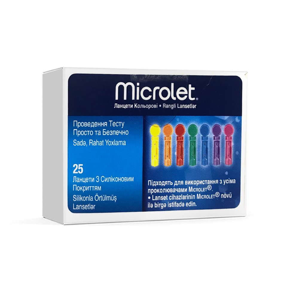 Ланцеты для ланцетного устройства Микролет (Microlet) — это иглы для прокалывания пальца, применяемые в глюкометре. Изделия, разработанные компанией Ascensia, выпускаются под торговой маркой Microlet. Они подходят под большинство устройств прокалывания. Иголки для анализа крови легко и быстро прокалывают кожу. Отсутствие дискомфорта во время процедуры объясняется двумя преимуществами изделий лазерная трехгранная заточка и сверхтонкий диаметр иголки.