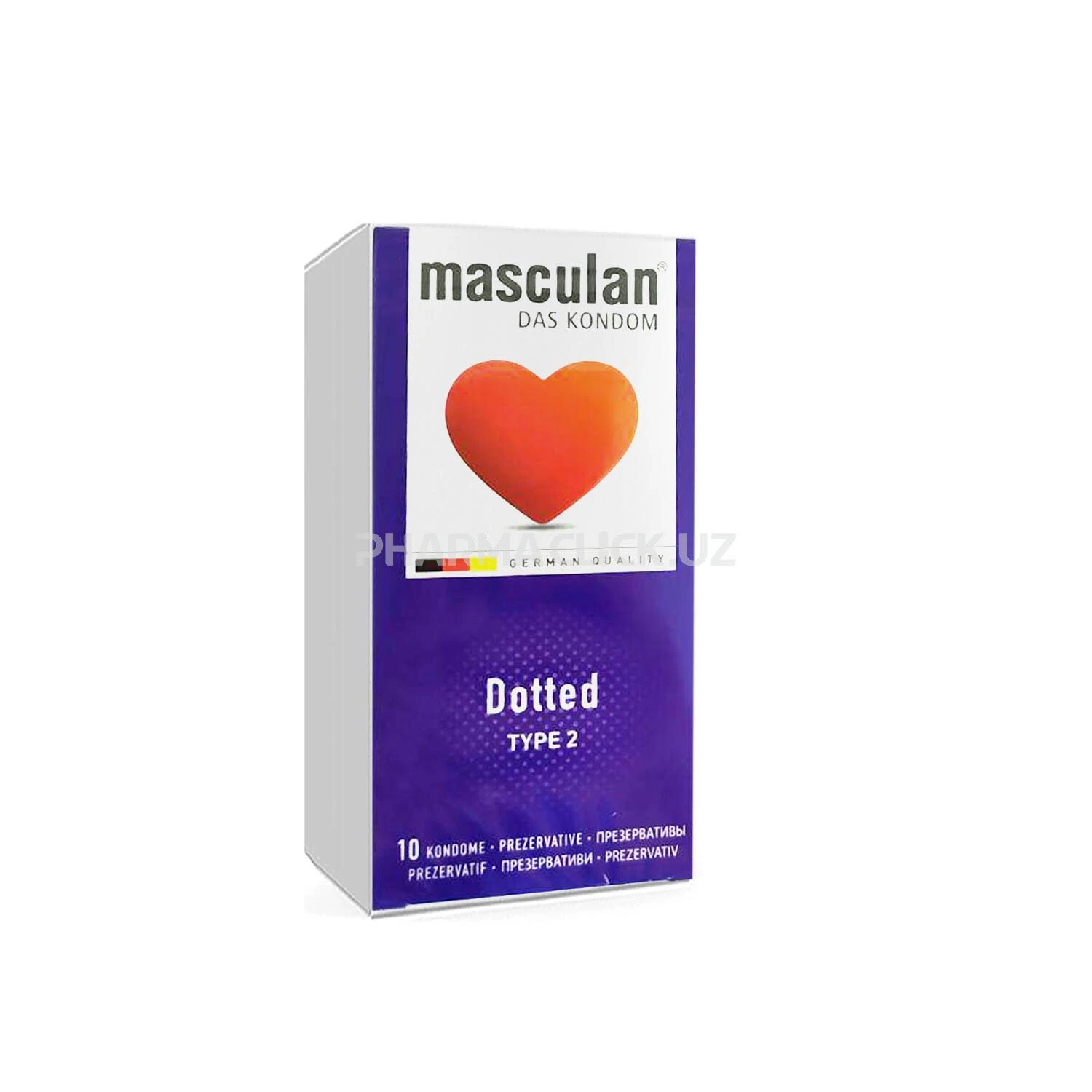 Презервативы Masculan (Маскулан) Dotted нежно розового цвета, анатомической формы. Обеспечивают сохранение естественных ощущений во время полового акта. Предназначены для предохранения от нежелательной беременности и защиты от заболеваний, передающихся половым путем. Продукция Маскулан по качеству изделия и упаковки является товаром премиум класса, однако позиционируется бренд в среднем ценовом сегменте, предоставляя высокое качество изделия по доступной основной массе населения цене.