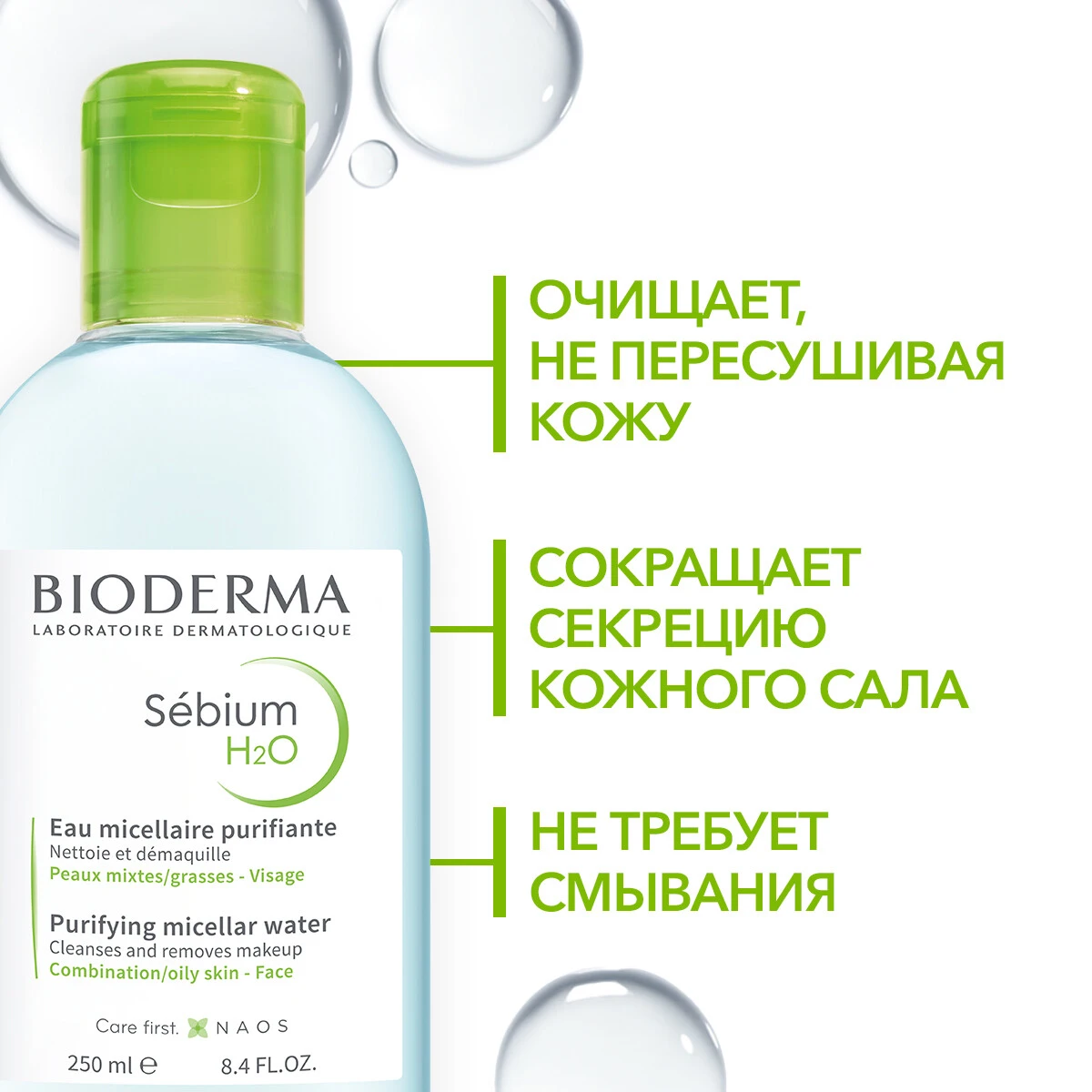 Sebium H2O – мицеллярная вода для очищения кожи, разработанная специально для комбинированной и жирной кожи. Бережно удаляет макияж, очищает поры, регулирует выработку кожного себума и предотвращает воспаления.