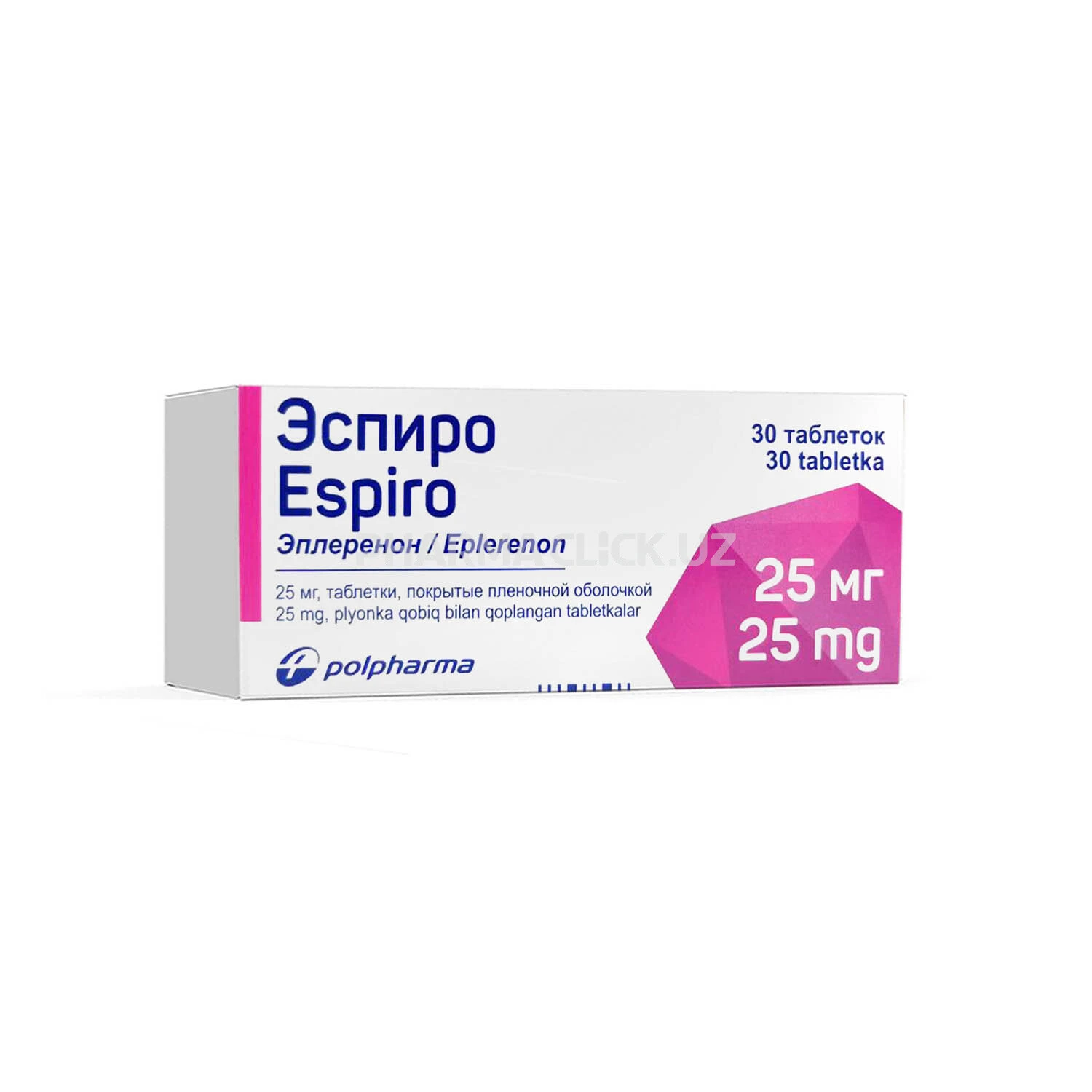 Эспиро 25 мг таблетка, покрытая пленочной оболочкой, содержит 25 мг эплеренона.