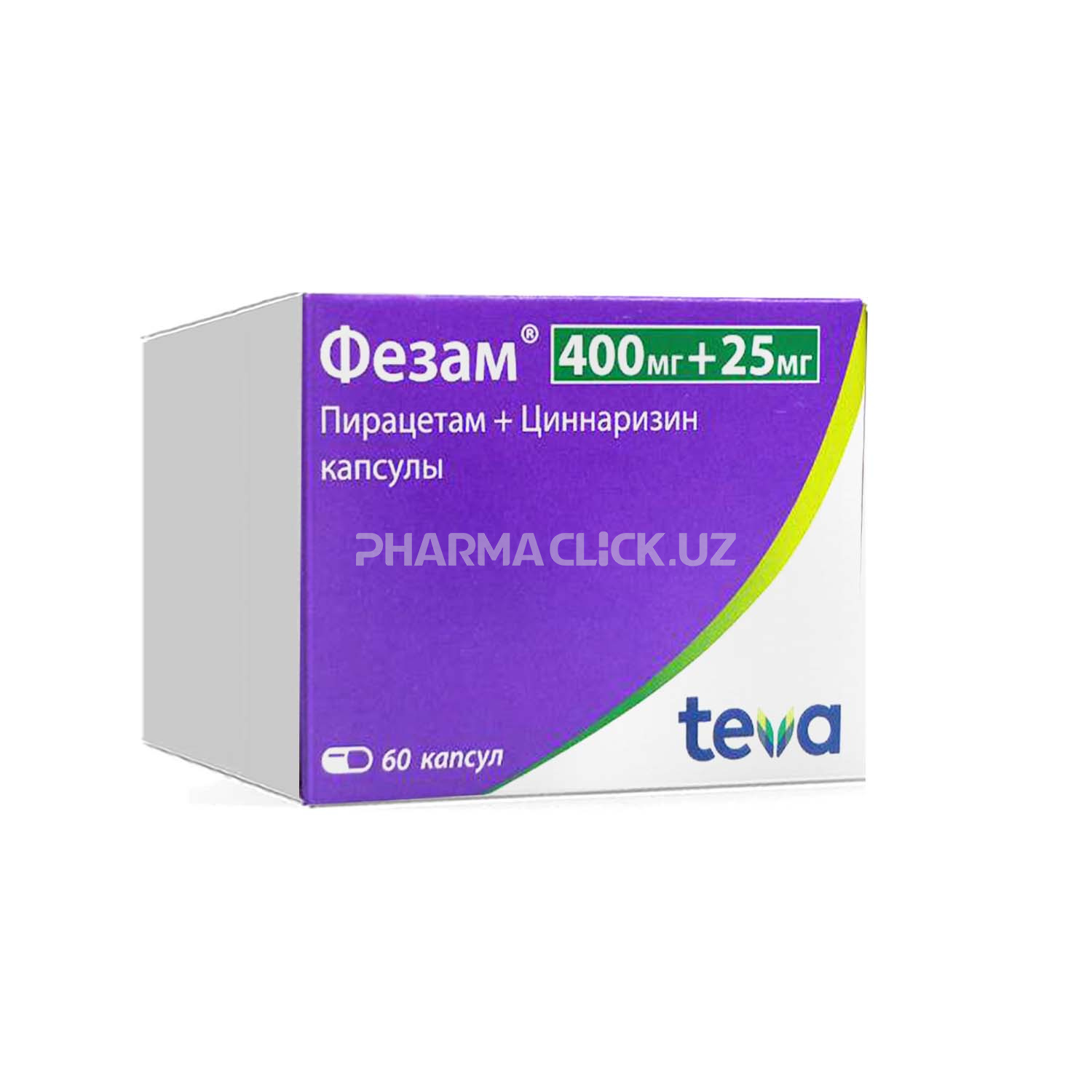 Фезам представляет собой комбинированный лекарственный препарат, содержащий лекарственные вещества пирацетам и циннаризин. Пирацетам входит в группу так называемых ноотропных лекарственных средств. Он улучшает и восстанавливает познавательные процессы и умственную работоспособность. Циннаризин подавляет процессы • транспорта кальциевых ионов через клеточные мембраны и приводит -к расширению кровеносных сосудов, уменьшает возбудимость центра равновесия, повышает устойчивость клеток к отсутствию кислорода. Комбинированный препарат обладает выраженным противогипоксическим действием (противодействующим уменьшенной поставке кислорода). Оба лекарственных вещества взаимно усиливают свои эффекты, и в результате улучшается мозговой кровоток.