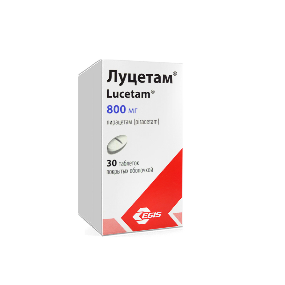 пирацетам Луцетам® таблетки покрытые оболочкой 400 мг Каждая таблетка покрытая оболочкой содержит 400 мг пирацетама, Луцетам® таблетки покрытые оболочкой 800 мг Каждая таблетка покрытая оболочкой содержит 800 мг пирацетама, Луцетам® таблетки покрытые оболочкой 1200 мг Каждая таблетка покрытая оболочкой содержит 1200 мг пирацетама. Вспомогательные вещества магния стеарат, повидон К-30, макрогол 6000, дибутилсебакат, титана диоксид, тальк, этилцеллюлоза, гипромеллоза.