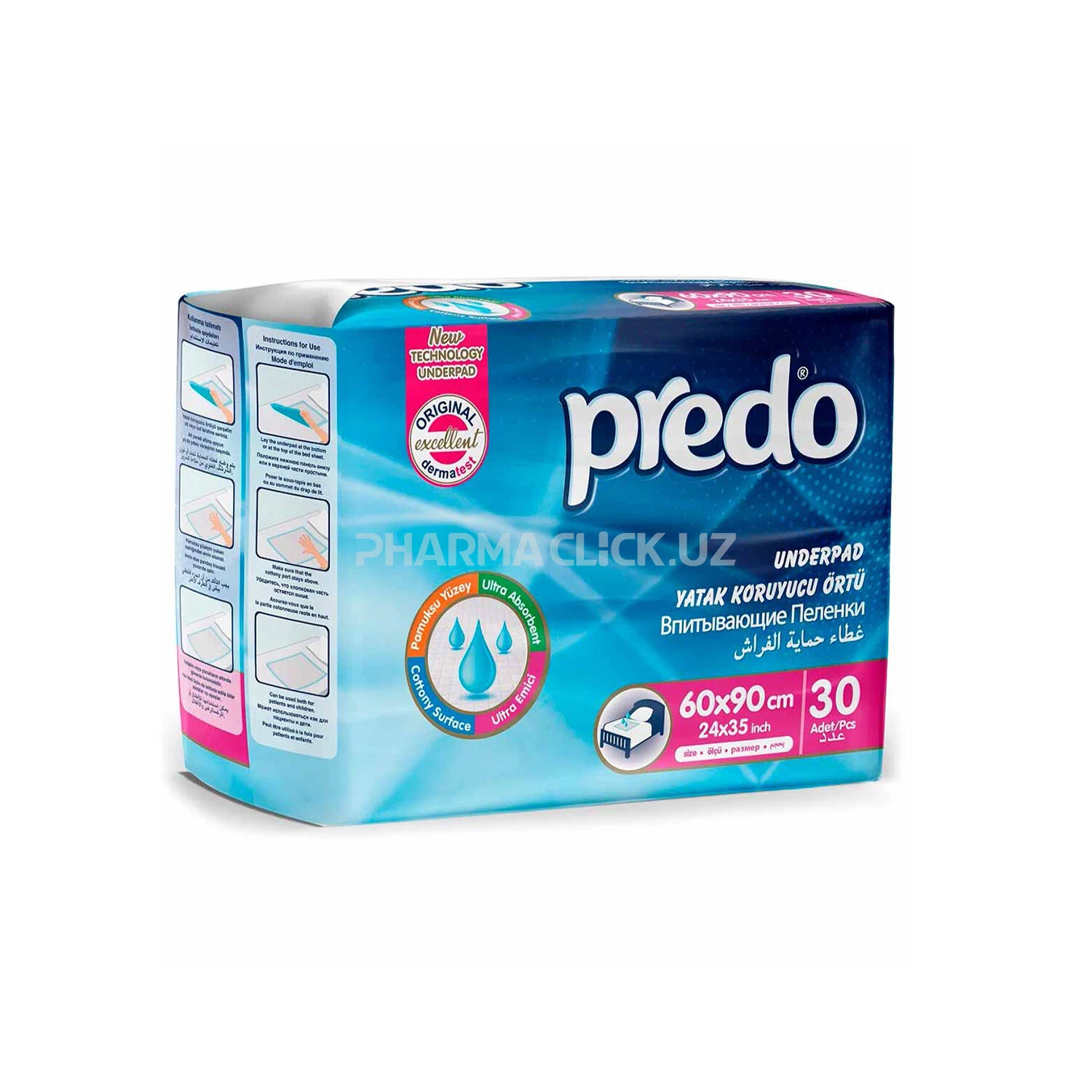 Впитывающие пеленки PREDO 60*90см х 30 шт, впитываемость 636 мл, Удерживающая способность 47,7 мл