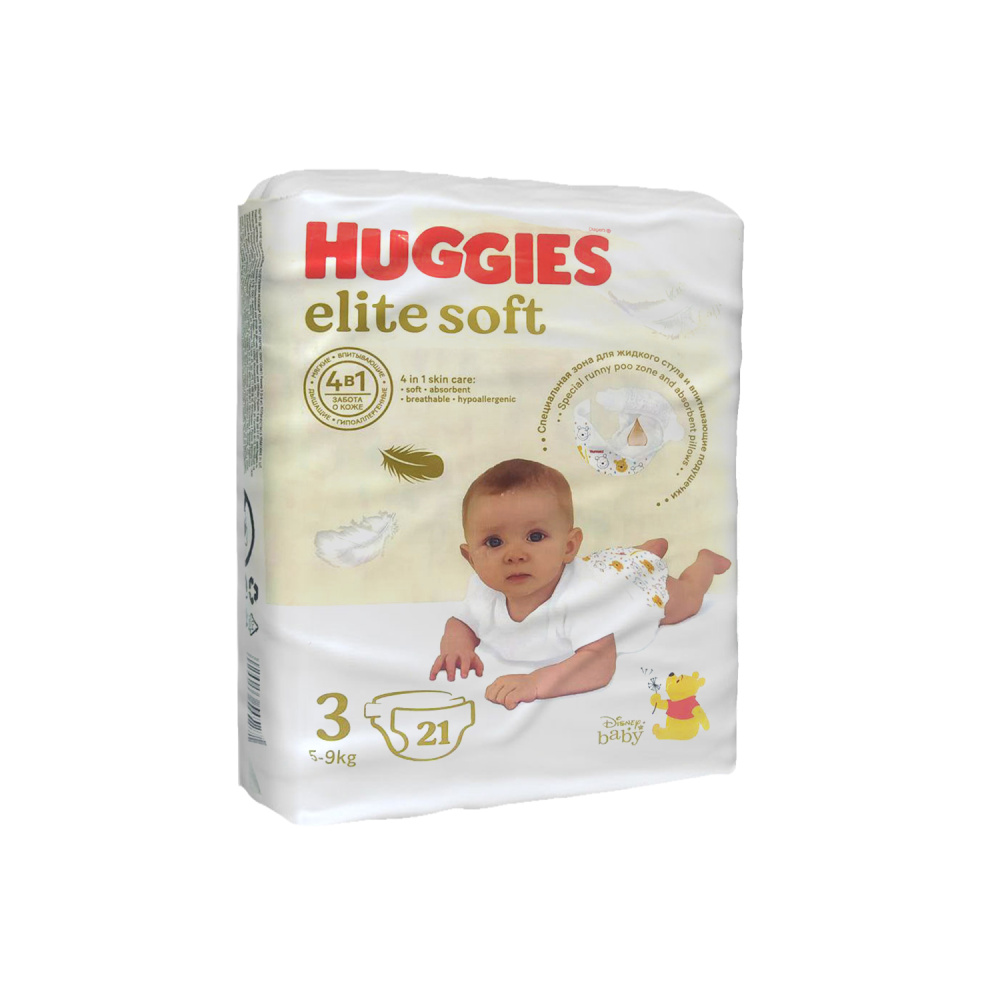 -Подгузники Хаггис Элит Софт 3 (5-9кг) 21*8 💊