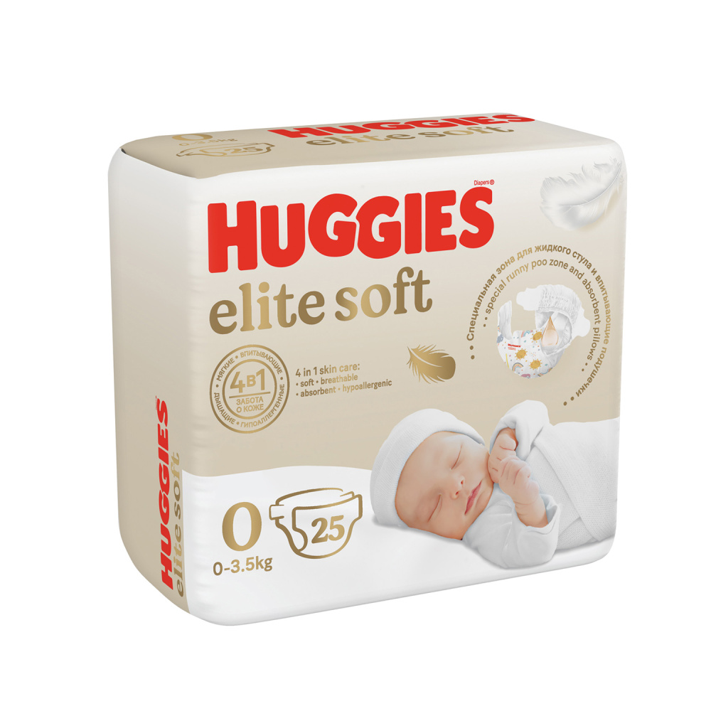 Подгузники Хаггис Элит Софт для новорожденных до 3,5кг, 0+ размер, 25шт