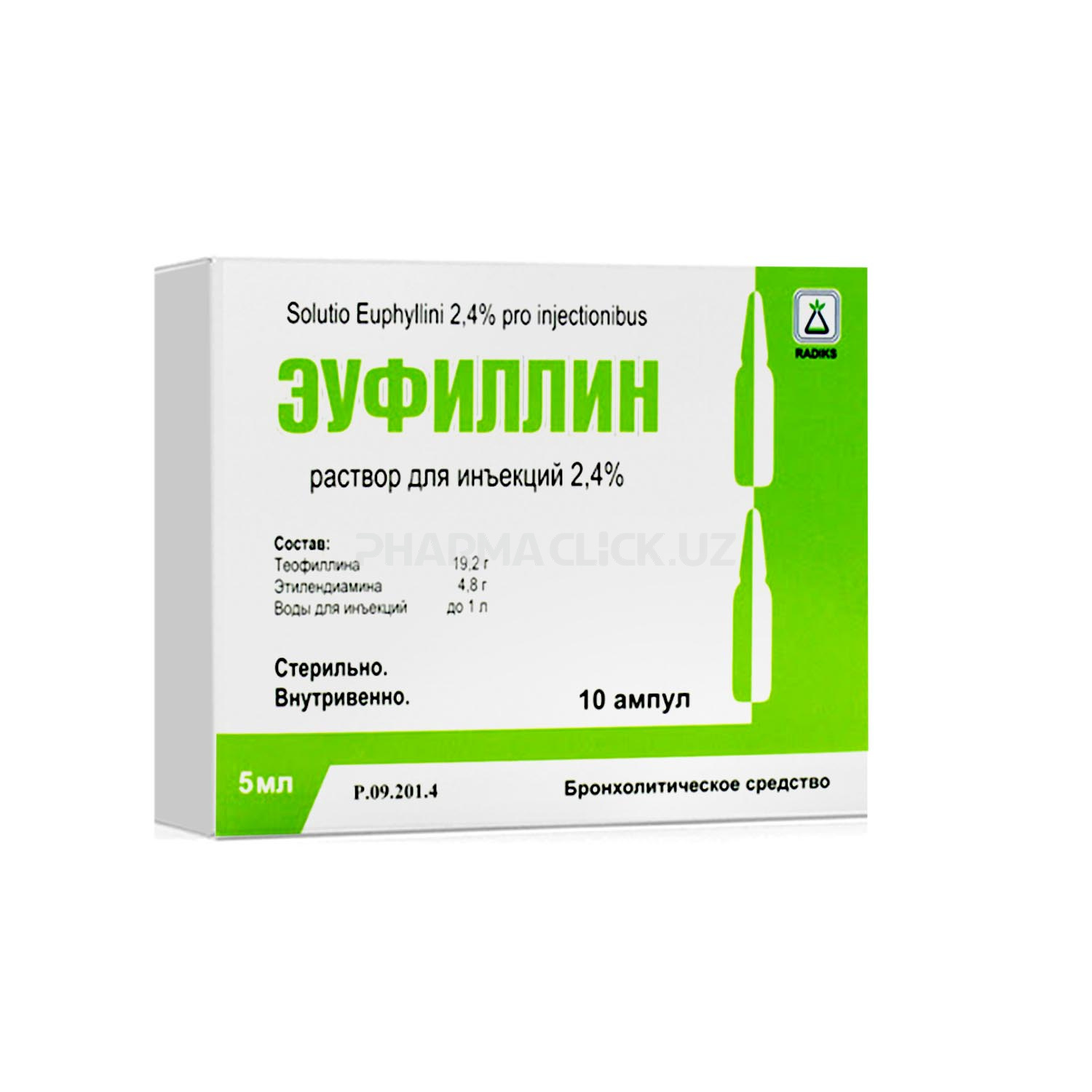 Инструкция Эуфиллин р-р д/ин. 2,4% 10мл №10 Radiks