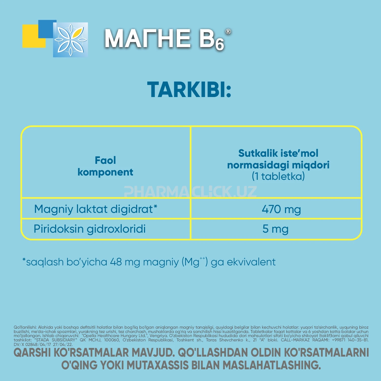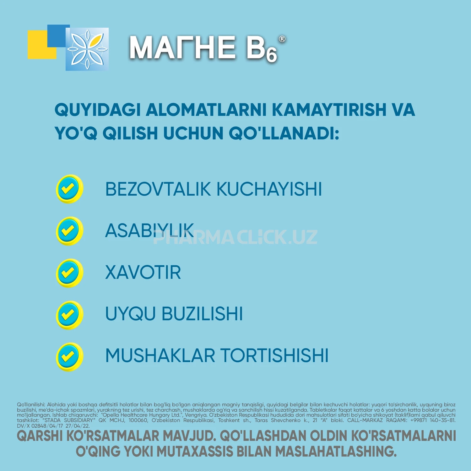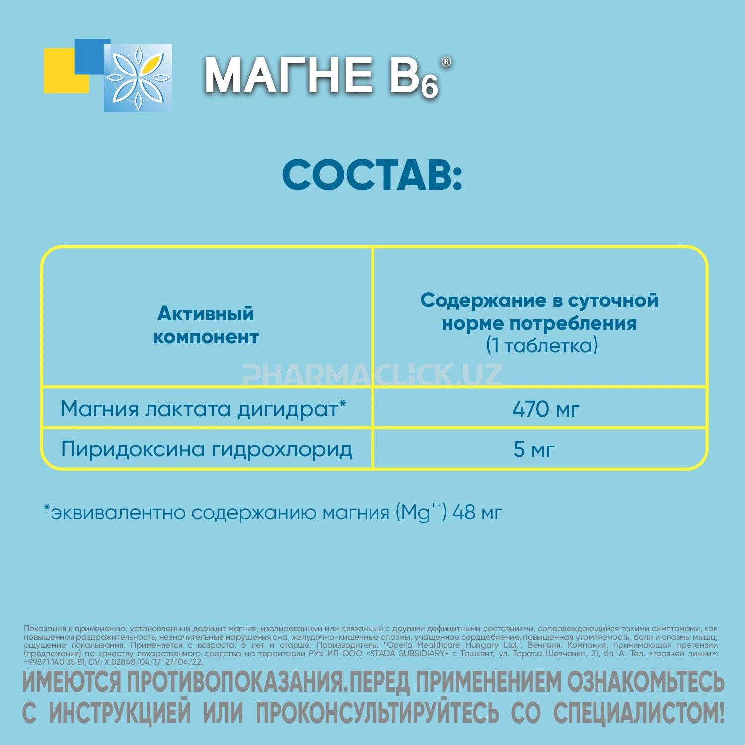 Сайт pharmaclick.uz не несет ответственности за возможные негативные последствия, возникшие в результате использования информации, размещенной на сайте pharmaclick.uz.