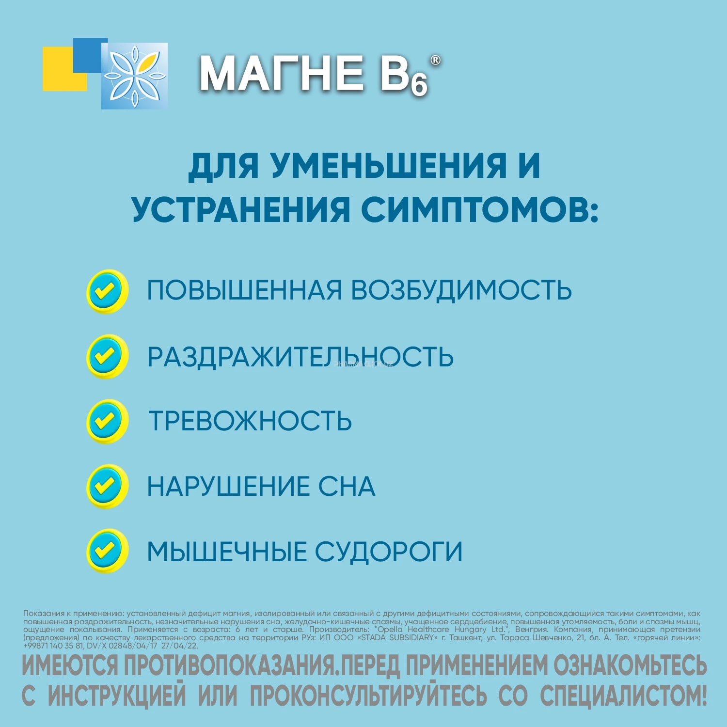 Данное лекарственное средство содержит магний. Один или несколько следующих симптомов может свидетельствовать о дефиците магния - Со стороны центральной нервной системы нервозность, раздражительность, чувство тревоги, преходящая усталость, снижение памяти и концентрации внимания, небольшие нарушения сна; - Со стороны периферической нервной системы судороги мышц конечностей и лица, мышечные боли, ощущения покалывания; - Со стороны сердечно-сосудистой системы ощущения сердцебиения и/или перебоев в работе сердца, кардиалгии; - Висцеральные спазмы гладкой мускулатуры, в т.ч. желудочно-кишечные спазмы, повышенный тонус матки. Физиологические состояния, связанные с дефицитом магния повышенные физические, эмоциональные и/или интеллектуальные нагрузки; период ускоренного роста у детей; беременность. Другие состояния, связанные с дефицитом магния прием комбинированных оральных контрацептивов, мочегонных; диета с пониженным содержанием магния.