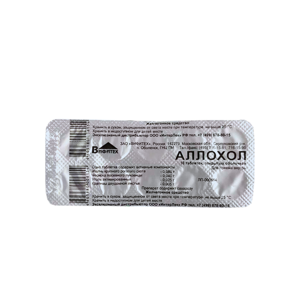 Негативных проявлений при применении Аллохола на фоне терапии другими лекарственными препаратами до настоящего времени не описано. Препараты, содержащие гидроксид алюминия, холестирамин, холестипол снижают абсорбцию (и уменьшают эффект) – одновременный прием не целесообразен.