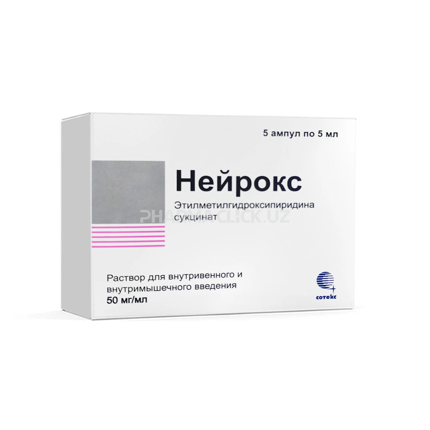 Внутримышечно (в/м) или внутривенно (в/в) (струйно или капельно). При инфузионном способе введения препарат следует разводить в 0,9% растворе натрия хлорида. Струйно Нейрокс вводят медленно в течение 5-7 мин, капельно – со скоростью 40-60 капель в минуту. Максимальная суточная доза не должна превышать 1200 мг. При острых нарушениях мозгового кровообращения Нейрокс применяют в комплексной терапии в первые 10-14 дней – в/в капельно по 200-500 мг 2-4 раза в сутки, затем – в/м по 200-250 мг 2-3 раза в сутки в течение 2 недель. При черепно-мозговой травме и последствиях черепно-мозговых травм Нейрокс применяют в течение 10-15 дней в/в капельно по 200-500 мг 2-4 раза в сутки. При дисциркуляторной энцефалопатии в фазе декомпенсации Нейрокс следует назначать в/в струйно или капельно в дозе 200-500 мг 1-2 раза в сутки в течение 14 дней. Затем – в/м по 100-250 мг/сут в течение последующих 2 недель. Для курсовой профилактики дисциркуляторной энцефалопатии Нейрокс вводят в/м в дозе 200-250 мг 2 раза в сутки в течение 10-14 дней. При нейроциркуляторной дистонии, невротических и неврозоподобных состояниях препарат вводят в/м по 50-400 мг в сутки в течение 14 дней. При легких когнитивных нарушениях у больных пожилого возраста и при тревожных расстройствах препарат применяют в/м в дозе 100-300 мг в сутки в течение 14-30 дней. При остром инфаркте миокарда в составе комплексной терапии Нейрокс вводят в/в или в/м в течение 14 суток, на фоне традиционной терапии инфаркта миокарда (включающей нитраты, бета-адреноблокаторы, ингибиторы ангиотензинпревращающего фермента (АПФ), тромболитики, антикоагулянтные и антиагрегантные препараты, а также симптоматические средства по показаниям). В первые 5 суток Нейрокс вводят внутривенно, в последующие 9 суток препарат может вводиться внутримышечно. Внутривенное введение препарата производят путем капельной инфузии (медленно) в течение 30-90 минут (в 100-150 мл 0,9% раствора натрия хлорида или 5% раствора декстрозы (глюкозы)), при необходимости возможно медленное струйное в/в введение препарата, продолжительностью не менее 5 минут. Введение препарата (в/в или в/м) осуществляют 3 раза в сутки, через каждые 8 часов. Суточная доза составляет 6-9 мг/кг массы тела, разовая доза – 2-3 мг/кг массы тела. Максимальная суточная доза не должна превышать 800 мг, разовая – 250 мг. При открытоугольной глаукоме различных стадий в составе комплексной терапии Нейрокс вводят в/м по 100-300 мг/сутки, 1-3 раза в сутки в течение 14 дней. При абстинентном алкогольном синдроме Нейрокс вводят в/м или в/в капельно в дозе 200-500 мг 2-3 раза в сутки в течение 5-7 дней. При острой интоксикации антипсихотическими лекарственными препаратами препарат вводят в/в в дозе 200-500 мг/сут в течение 7-14 дней.