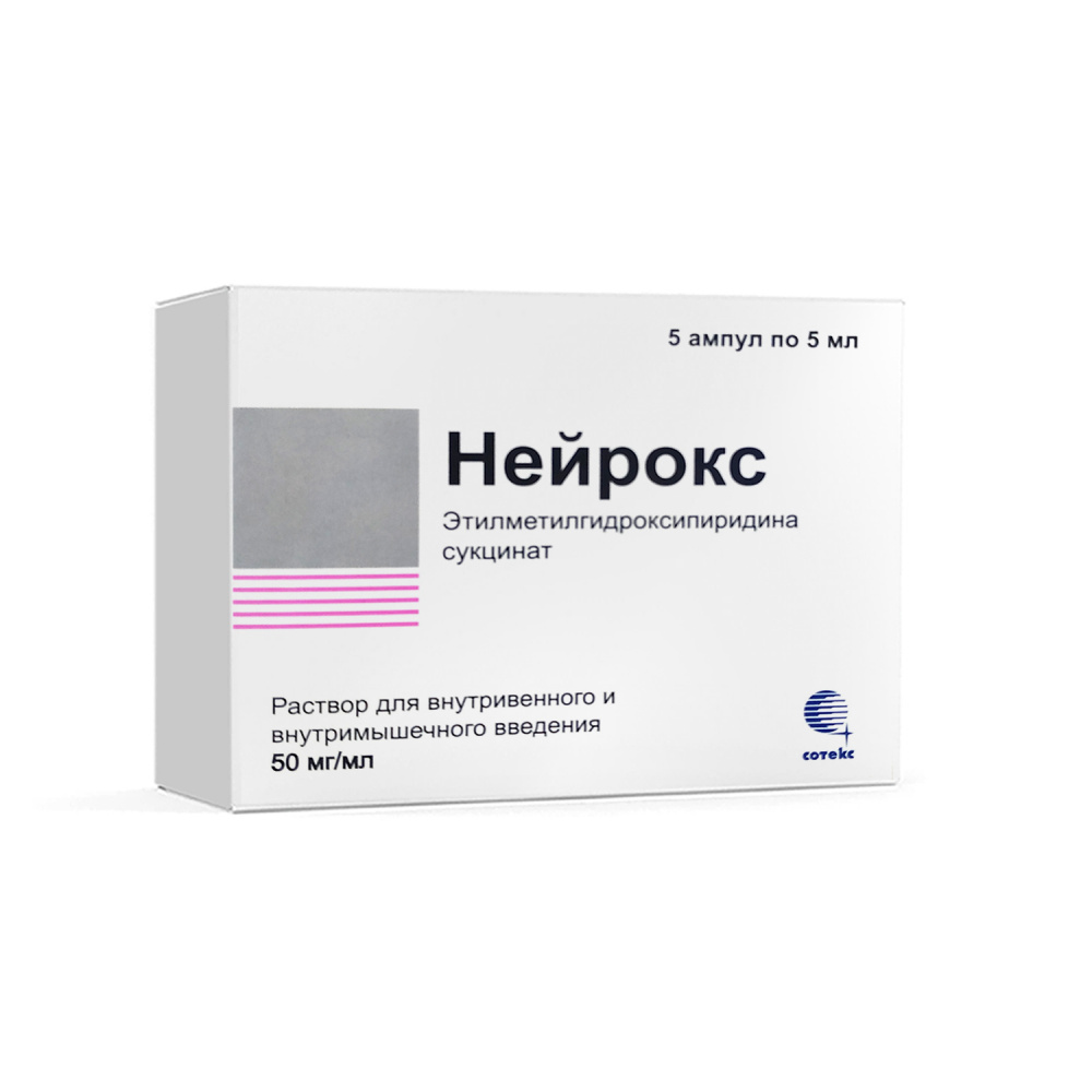 При внутримышечном введении препарат определяется в плазме крови на протяжении 4 ч после введения. Время достижения максимальной концентрации при внутримышечном введении – 0,3-0,58 ч. Максимальная концентрация при внутримышечном введении в дозе 400-500 мг – 2,5-4 мкг/мл. Этилметилгидроксипиридина сукцинат быстро переходит из кровеносного русла в органы и ткани и быстро выводится из организма. Среднее время удержания препарата в организме при внутримышечном введении – 0,7-1,3 ч. Метаболизируется в печени путем глюкуронирования. Быстро выводится с мочой в основном в виде метаболитов (50% за 12 ч) и в незначительном количестве – в неизмененном виде (0,3% за 12 ч). Наиболее интенсивно выводится в течение первых 4 ч после приема препарата. Показатели выведения с мочой неизмененного препарата и метаболитов имеют значительную индивидуальную вариабельность.