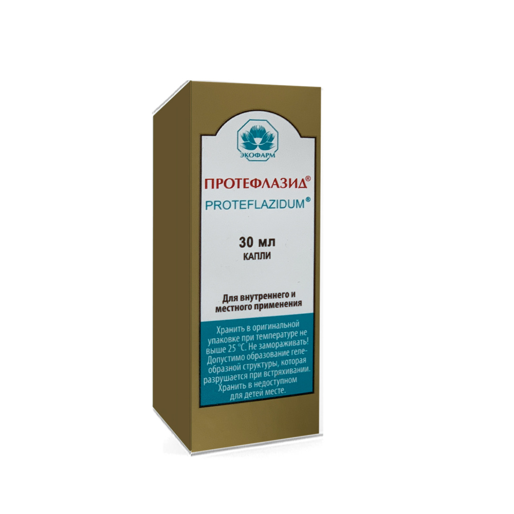 Препарат дозируется с помощью капельницы. Необходимое количество препарата накапать в воду (1-2 столовые ложки), принимать за 10-15 минут до еды, а при лечении вирусных гепатитов через 1,5-2 часа после еды. Для лечения герпетического гингивостоматита, фаринготонзиллита; для комплексного лечения вирусных, бактериальных, грибковых инфекций и их ассоциаций, в том числе папилломавирусной инфекции; для предотвращения вирусных и бактериальных инфекций, возникающих у пациентов с недостаточной функцией иммунной системы, рекомендована базовая схема приема в течение 1 месяца. При необходимости срок приема продлевают до 2 месяцев без перерыва (с 4-й недели приема – по 12 капель 2 раза в день). Продолжительность лечения папилломавирусной инфекции составляет 3 месяца без перерыва. Контрольное исследование (ПЦР) на папилломавирус необходимо делать не ранее чем через 2 месяца после окончания лечения с целью предотвращения получения псевдоположительных результатов. Базовая схема приема для взрослых и детей старше 12 лет 1-ая неделя – по 7 капель 2 раза в день; 2-ая -3-я неделя – по 15 капель 2 раза в день; 4-ая неделя – по 12 капель 2 раза в день. При рецидивирующем течении инфекций, а также у детей, которые часто и длительное время болеют, курсы лечения препаратом проводят 2-4 раза в год. Дозирование проводят по базовой схеме и соответственно возрастным дозам. Продолжительность лечения в педиатрической практике аналогична таковому у взрослых, но согласно возрастным дозам. Таблица 1. Возрастные дозы препарата Протефлазид® Дети до 1 года по 1 капле в день Дети от 1 до 2 лет по 1 капле 2 раза в день Дети от 2 до 4 лет 1-я неделя - по 1 капле 2 раза в день; с 2-ой недели - по 2 капли 2 раза в день. Дети от 4 до 6 лет 1-я неделя - по 3 капли 2 раза в день; с 2-ой недели - по 4 капли 2 раза в день. Дети от 6 до 9 лет 1-я неделя - по 5 капель 2 раза в день; с 2-ой недели - по 9 капель 2 раза в день. Дети от 9 до 12 лет 1-я неделя - по 6 капель 2 раза в день; с 2-ой недели - по 10 капель 2 раза в день. Для лечения герпетической экземы, герпетичного везикулярного дерматита, герпетического менингита и энцефалита, герпетического поражения глаз, генитального герпеса; для лечения опоясывающего герпеса (Herpes zoster); острой и хронической активной формы Эпштейна-Барр вирусной инфекции, цитомегаловирусной болезни; комплексного лечения оппортунистических инфекций у ВИЧ-инфицированных и больных СПИДом (до или после антиретровирусной терапии) рекомендована схема лечения хронической, часто рецидивирующей герпетической инфекции Взрослые и дети старше 12 лет • по 7 капель 2 раза в день в течение следующих 3-х дней; • по 10 капель 2 раза в день в течение следующих 3-х дней; • по 12-15 капель 2 раза в день в течение 3-х месяцев без перерыва. Поддерживающую терапию после основного курса лечения следует проводить в течение 2-4-х месяцев по 10 капель 2 раза в день. В педиатрической практике препарат назначают в соответствии возрастных доз. При лечении инфекций простого герпеса кожных покровов и слизистых оболочек, острых форм опоясывающего лишая, папилломатоза кожи, следует наносить раствор препарата на поврежденный участок до 3-5 раз в день. Для приготовления раствора необходимо 1,5 мл (36-38 капель) развести в 10 мл физиологического раствора хлорида натрия. При первичном и рецидивирующем генитальном герпесе, а также при папилломавирусной инфекции 