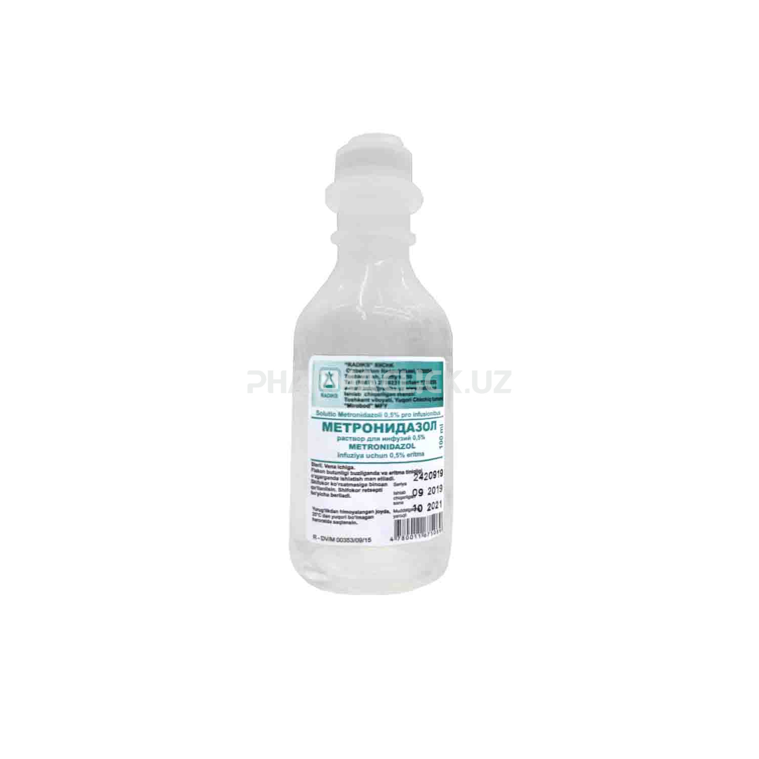 100 мл раствора содержат Активное вещество метронидазол - 500 мг. Вспомогательные вещества натрий хлорид, вода для инъекций.