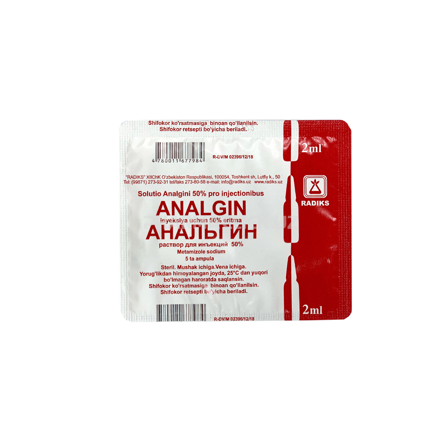Инструкция Анальгин р-р д/ин. 50% 2мл №5 Radiks