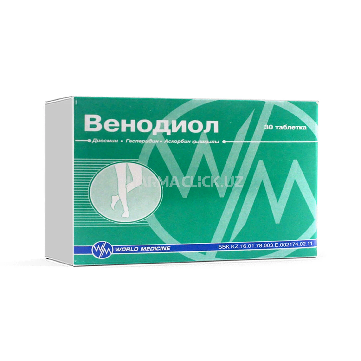 1 таблетка препарата Венедиол содержит Активное вещество Диосмин 450 мг, Гесперидин 50 мг, Аскорбиновая кислота 100 мг; Вспомогательные вещества желатин, натрия микрокристаллическая целлюлоза, вода очищенная.