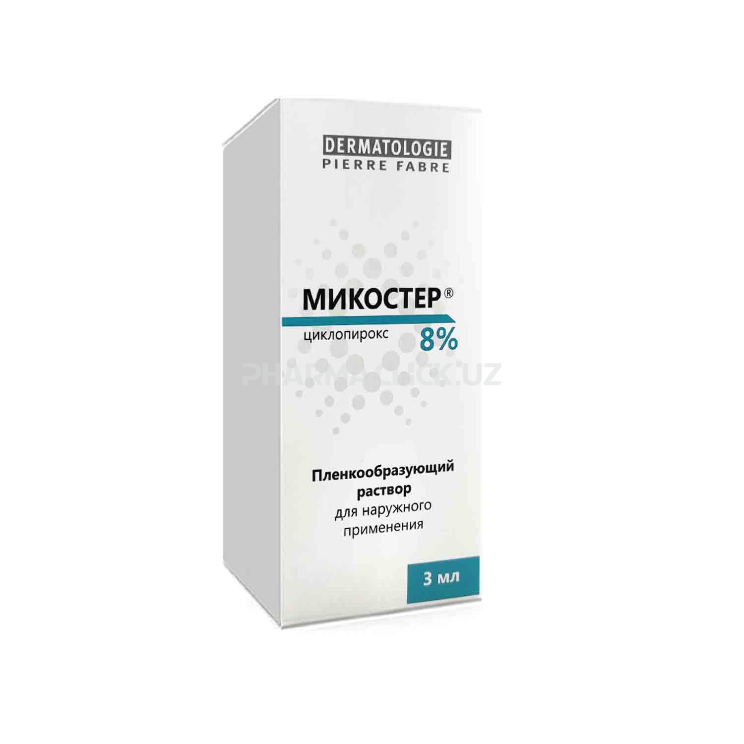 МИКОСТЕР 8% пленкообразующий раствор для местного применения во флаконе предназначен для лечения микозов ногтей (онихомикоз) рук и ног. Активное вещество циклопирокс проникает в ткань ногтей и убивает грибки.