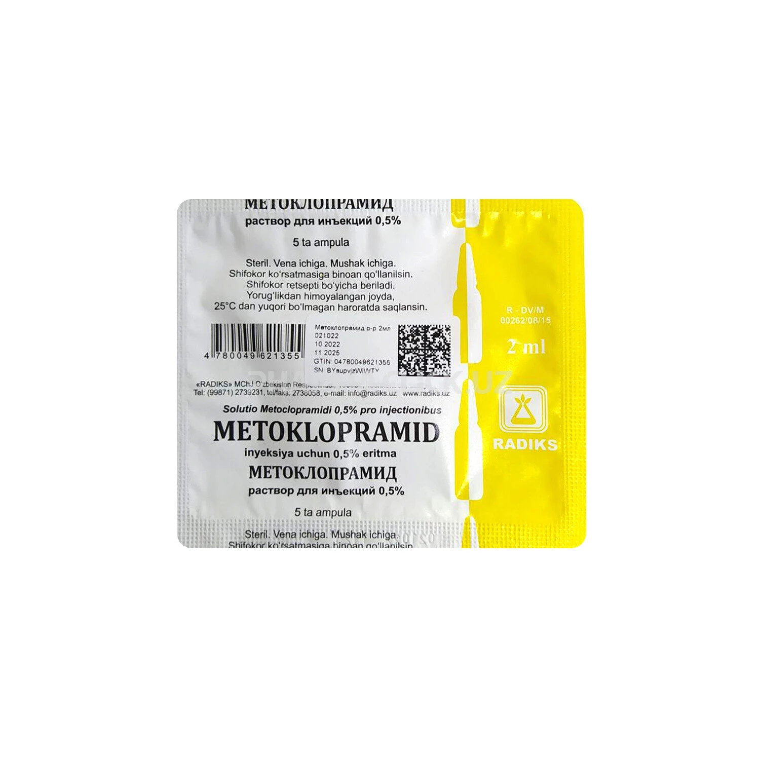 Инструкция Метоклопрамид р-р д/ин. 0,5% 2мл №5 Radiks