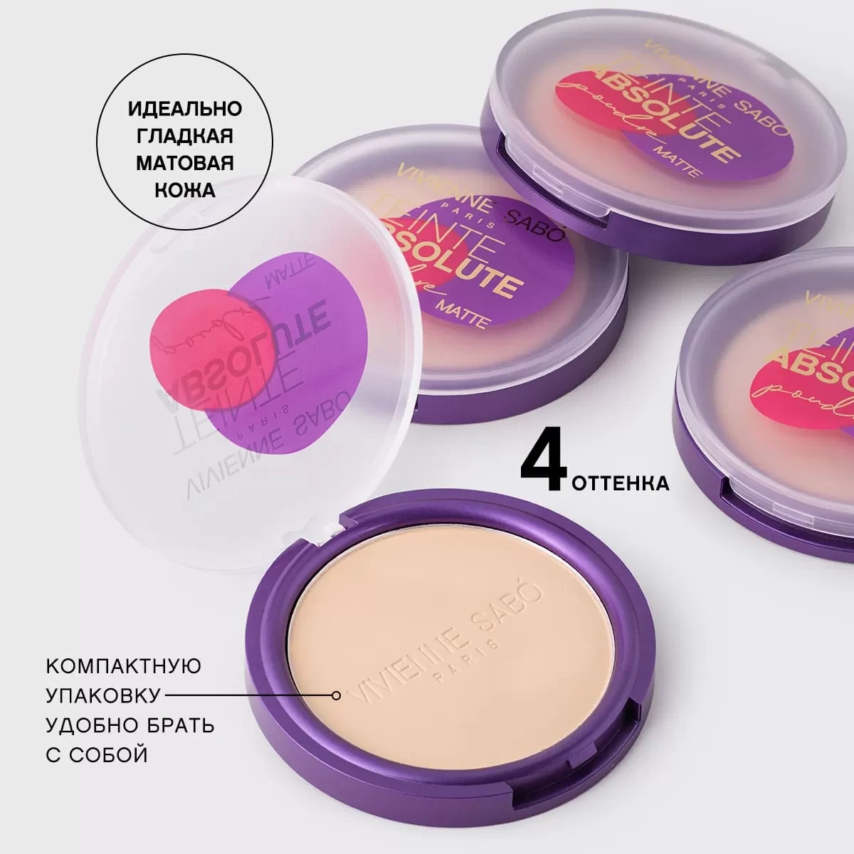 Пудра Vivienne Sabo Teinte Absolute (Вивьен Сабо Тинт Абсолют) со стойкой шелковистой текстурой выдержит любые испытания. Матовый естественный финиш, безупречное покрытие, универсальные оттенки - с этой пудрой ты будешь уверена в том, что твой образ безупречен!