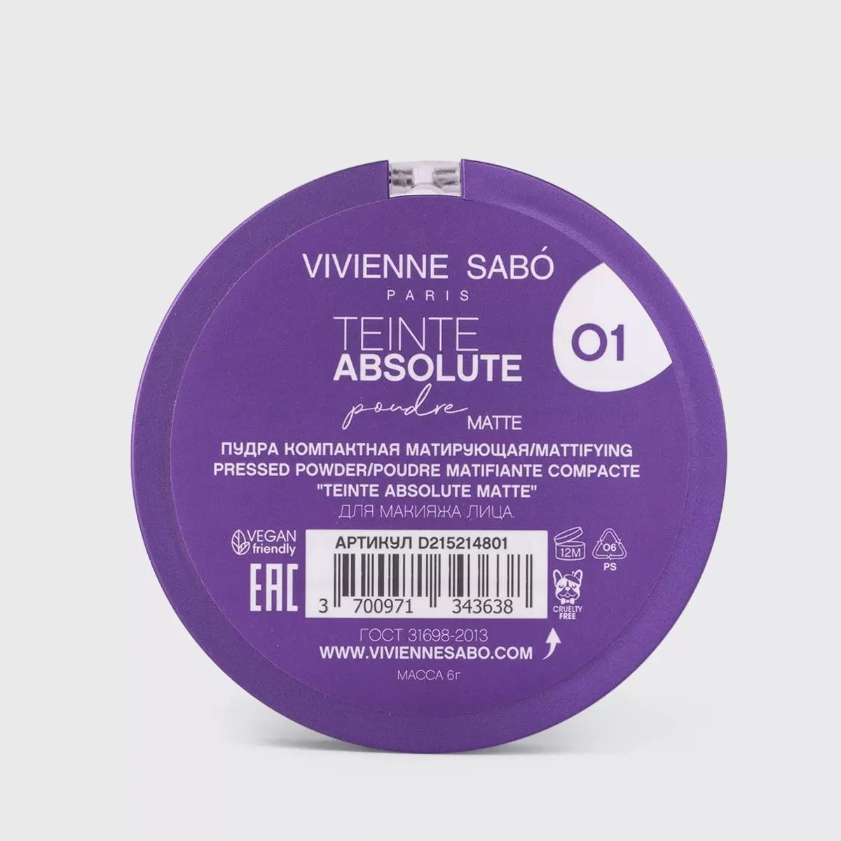 | Пудра компактная матирующая Vivienne Sabo Teinte Absolute тон 01 (##dr7) |