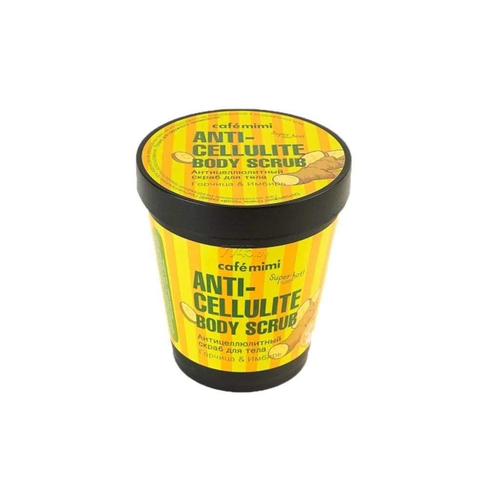 Разогревающий антицеллюлитный скраб на основе морской соли, Горчицы и Имбиря CAFEMIMI - идеальное средство для борьбы с целлюлитом, обеспечивает глубокое очищение и обновление клеток эпидермиса. Горчица обеспечивает разогревающий эффект, раскрывает поры и стимулирует кровообращение, оказывает мощное антицеллюлитное действие. Имбирь тонизирует кожу, повышает эластичность и упругость. Масло Авокадо питает, увлажняет и смягчает кожу.- Применение Нанеси скраб на влажную кожу тела интенсивными массажными движениями, уделяя особое внимание проблемным зонам. Смой тёплой водой. Для закрепления результата используй антицеллюлитный крем CAFEMIMI.