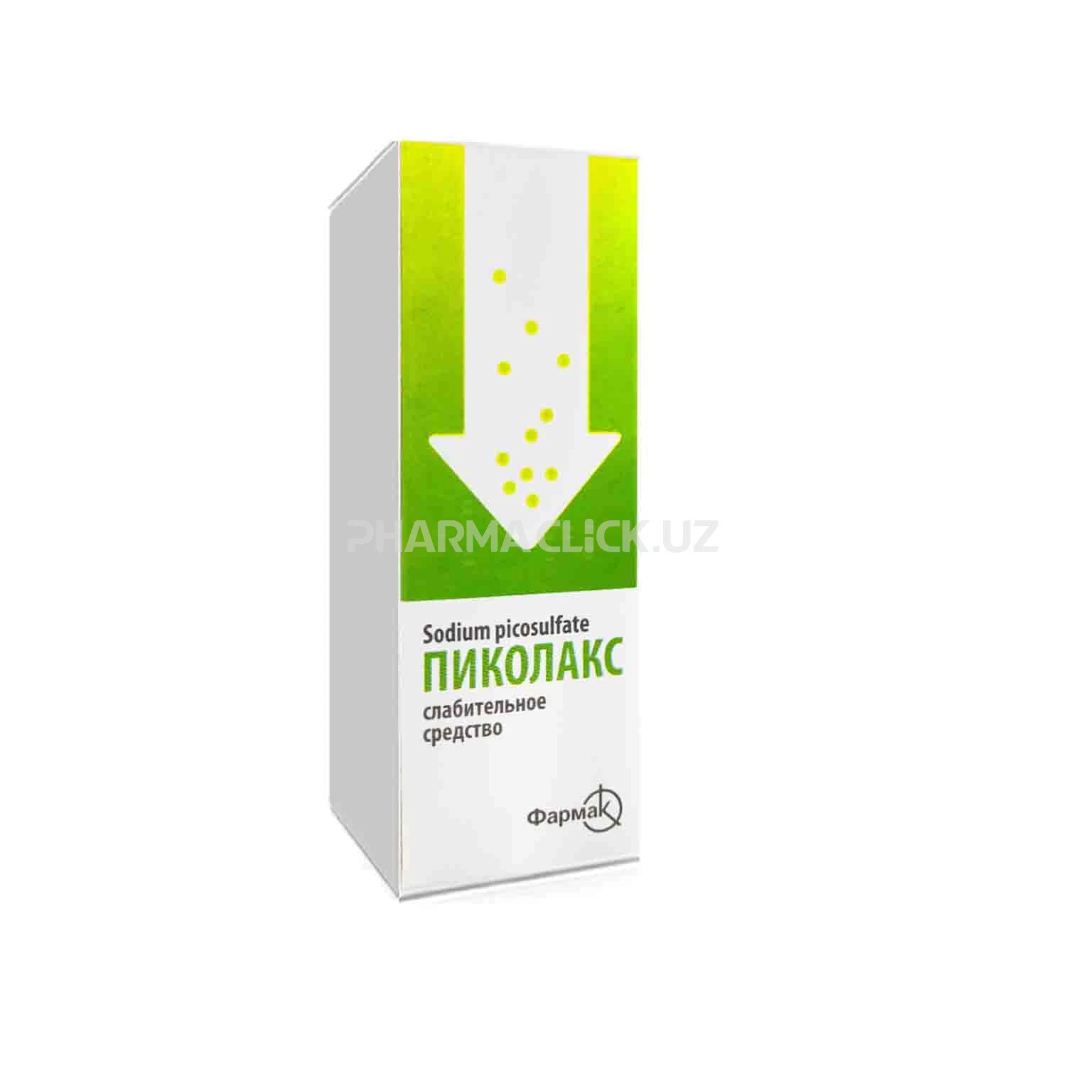 После перорального применения натрия пикосульфат достигает толстого кишечника без существенной абсорбции. Активный метаболит бис-(п-гидроксифенил)-пиридил-2-метан образуется после бактериального расщепления в толстой кишке, начало действия Пиколакса обычно происходит через 6-12 часов после приема препарата, в зависимости от освобождения активного метаболита. После перорального применения только незначительное количество лекарственного средства может быть выявлено в органах и системах организма. Слабительный эффект препарата не коррелирует с уровнем активного метаболита в плазме крови Натрия пикосульфат, действующее вещество Пиколакса, является слабительным средством местного действия триарилметановой группы. Натрия пикосульфат после бактериального расщепления в толстой кишке стимулирует ее слизистую оболочку, ускоряя перистальтику, способствует кумуляции воды и электролитов в просвете толстой кишки. Результатом этого является стимуляция дефекации, уменьшение времени транзита и размягчение кала.