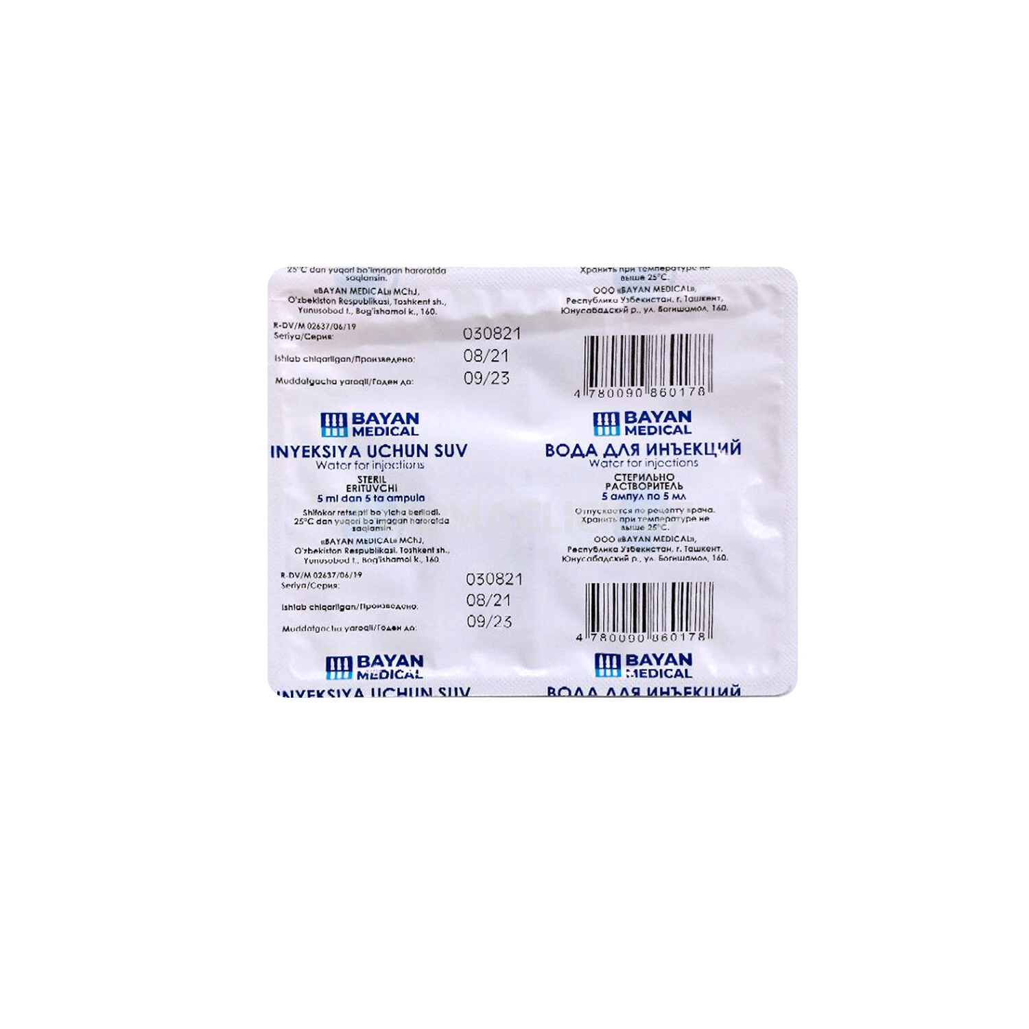 Инструкция Вода для иньек.амп.5мл №5 (BAYAN MEDICAL)