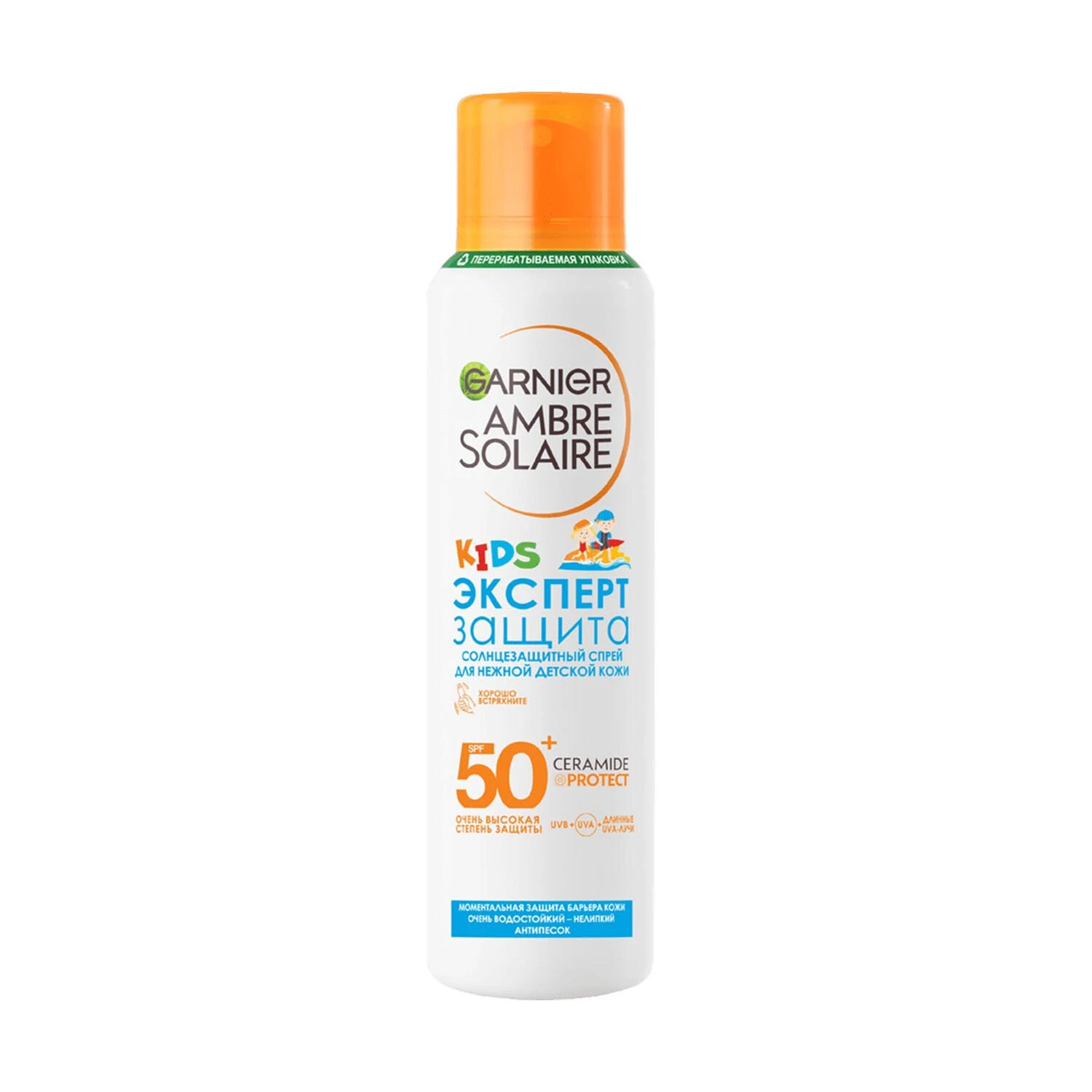 Водостойкий солнцезащитный сухой спрей Анти-песок Эксперт защита для детей SPF 50+ позволяет малышам получать максимум приятных впечатлений от отдыха на солнце, а их родителям — не беспокоиться о здоровье чувствительной к ультрафиолету детской кожи.