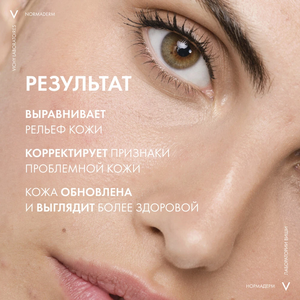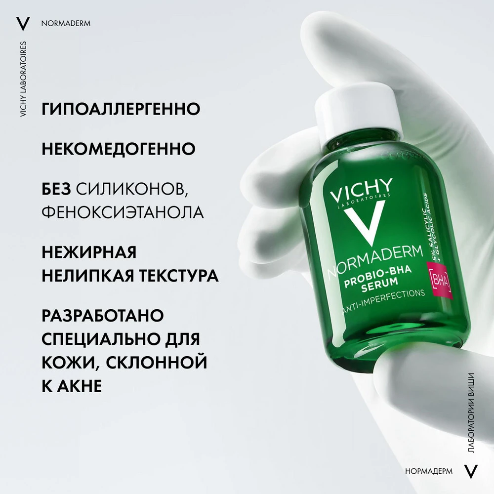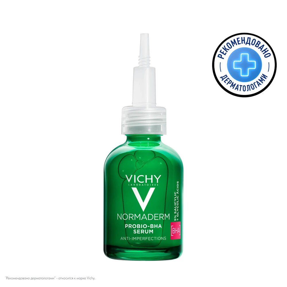 Инновация* от VICHY Лаборатории VICHY объединили Вулканическую воду VICHY с 5% Салициловой + Гликолевой кислотами и Пробиотической фракцией. Сыворотка выравнивает рельеф кожи и корректирует признаки проблемной кожи – несовершенства, черные точки и расширенные поры. Кожа обновлена и выглядит более здоровой. Гипоаллергенно. Некомедогенно.