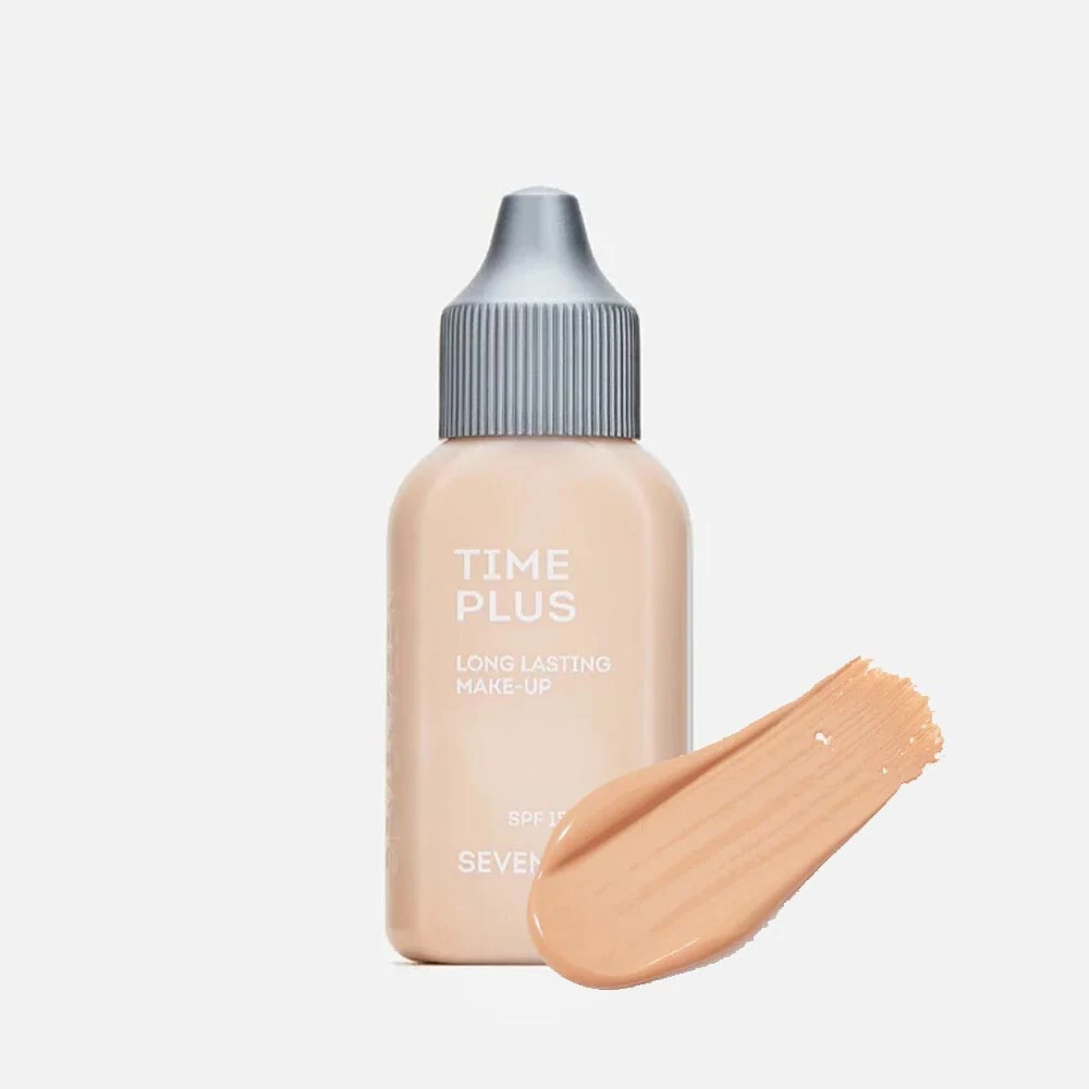 Тональный крем Time Plus с матовым покрытием держится весь день, защищая кожу от солнечных лучей с помощью УФ-фильтра.