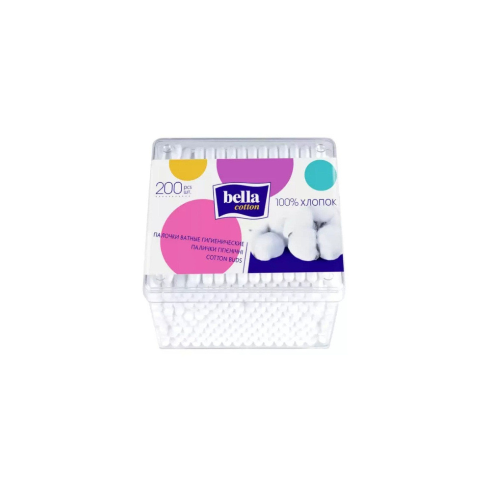 Ватные палочки гигиенические косметические ушные Белла Bella cotton 200 шт. Изготовлены из натурального хлопка, отбеленного без хлора, прекрасно впитывают влагу, предназначены для очищения и удаления влаги в складках кожи новорожденных младенцев, между пальцами, в области ушей и носа, а также для корректировки макияжа. Такие одноразовые палочки для очищения идеально подойдут для использования и взрослым, и детям с рождения. Ватные палочки могут применяться для рисования, удаления лака с ногтей и кутикулы во время маникюра и педикюра. При использовании плотная намотка ваты не позволяет волокнам отслаиваться, а упругая пластиковая палочка не гнется.