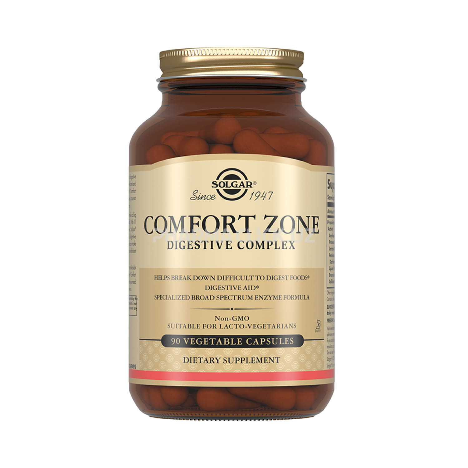 Смесь Botanical Comfort (Порошок кумина (семена) Экстракт фенхеля, Ромашка (цветки), Экстракт имбиря (корень), Порошок аниса (семена)) — 225 мг, Амилолитическая активность — 2500 FIP/капс, Протеолитическая активность — 150 FIP/капс.
