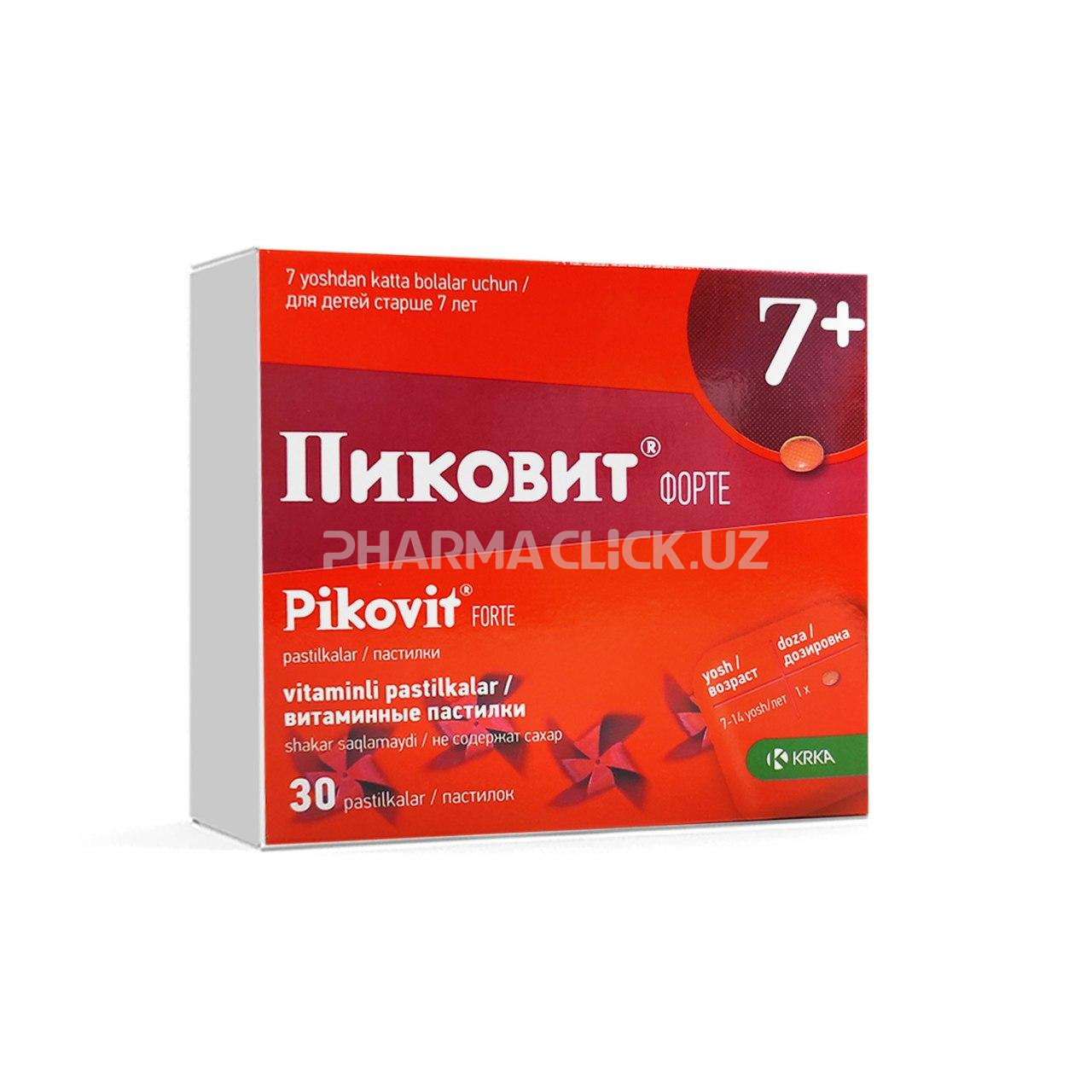 Пастилки Пиковит® форте содержат 11 наиболее важных витаминов в количествах, соответствующих рекомендуемой суточной дозе для детей в возрасте от 7 лет и старше.