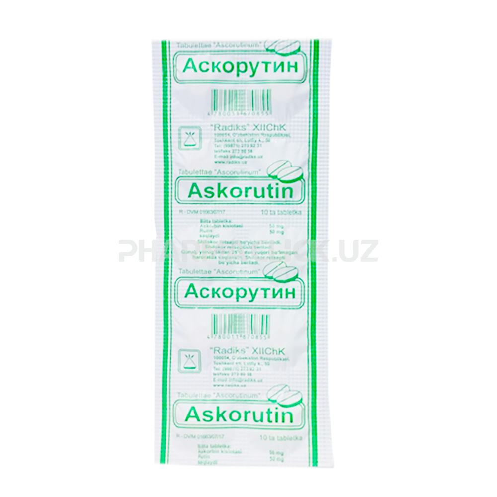 Комбинированный препарат. Восстанавливает дефицит витамина С и Р. Рутин вместе с аскорбиновой кислотой участвует в окислительно-восстановительных процессах, обладает антиоксидантными свойствами, предотвращает окисление и способствует депонированию аскорбиновой кислоты в тканях. Оба компонента укрепляют сосудистую стенку (способствуют образованию межклеточного вещества и снижают активность гиалуронидазы), уменьшают проницаемость и ломкость капилляров.
