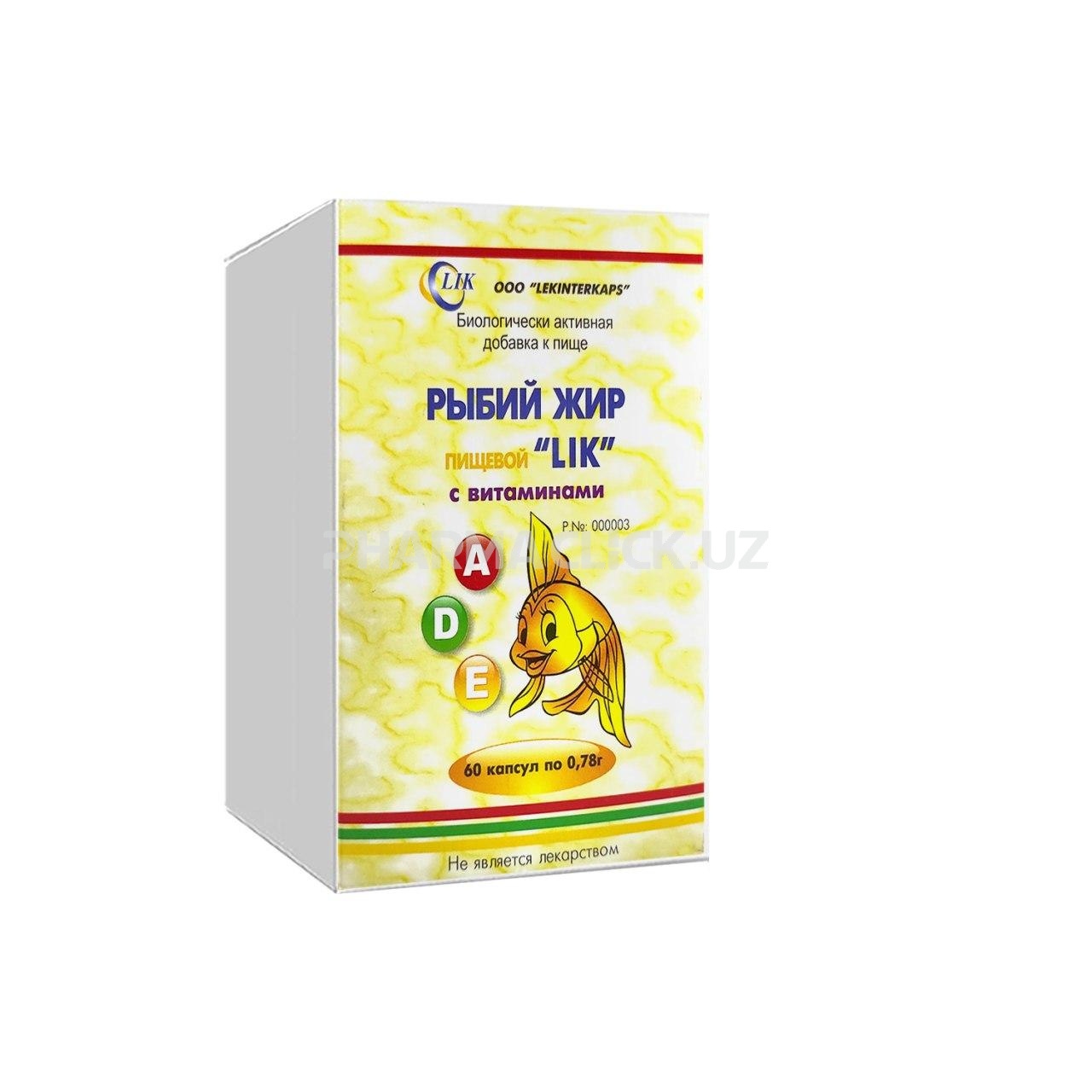 Инструкция Рыбий жир пищевой "LIK" с витаминами A,D,E 0,78г №60