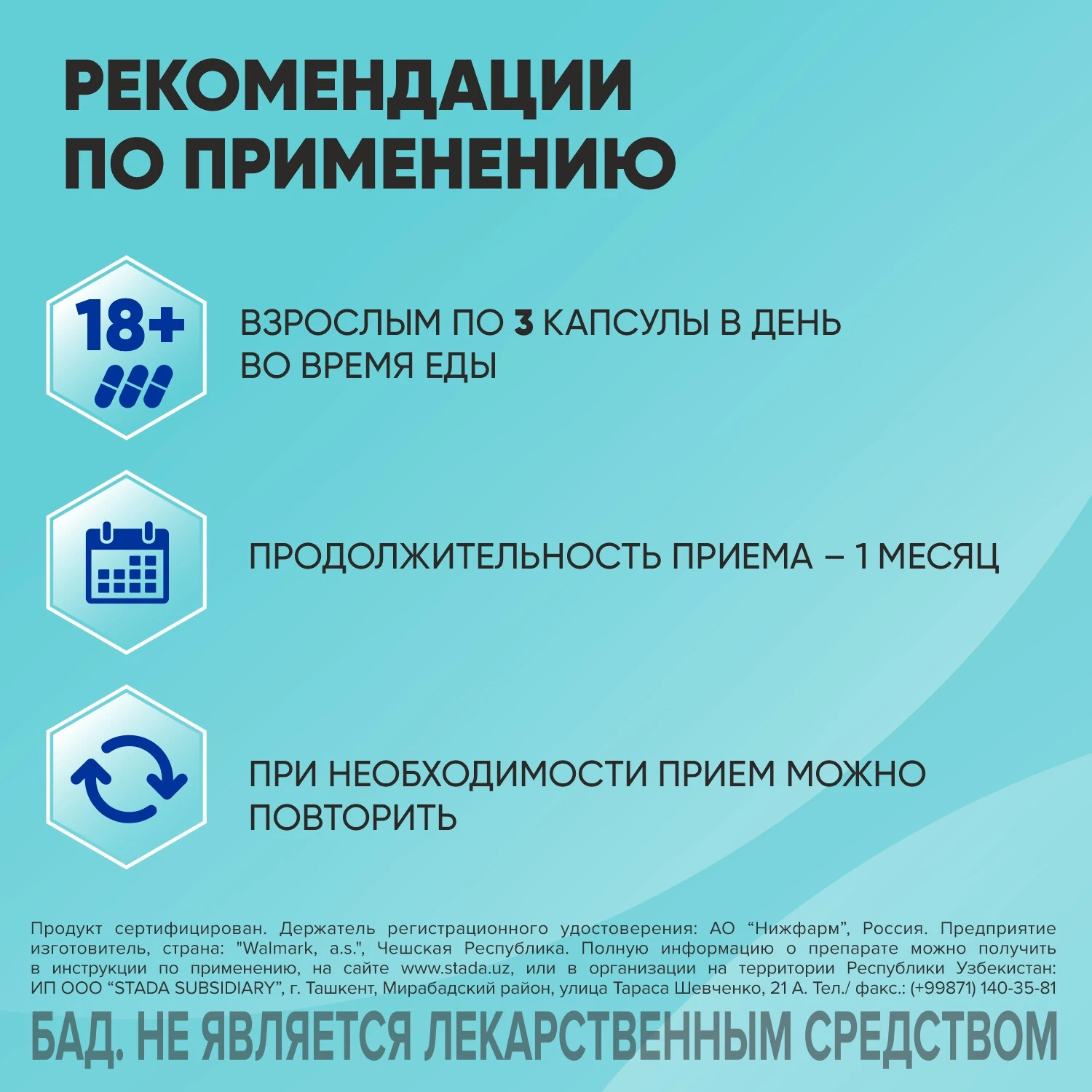 Содержание в суточной норме потребления (3 капсулы по 598 мг)